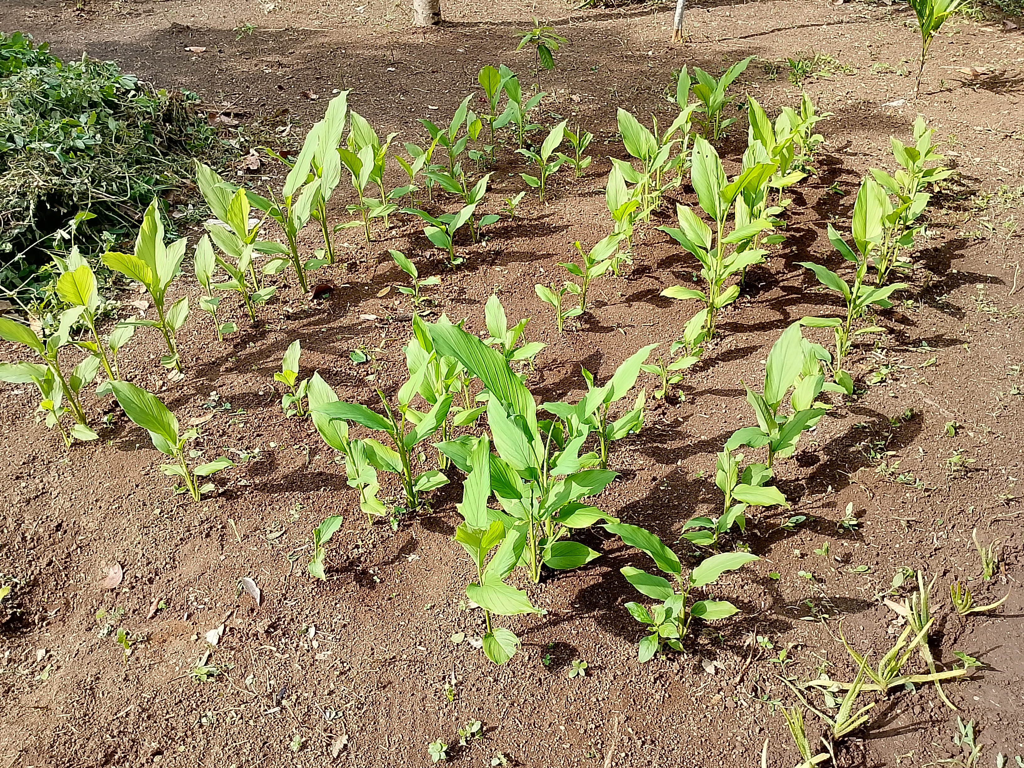 in this post : Turmeric For HEALTH has grown You can see the growth over the past month. The turmeric I planted is still very small, with some still sprouting fine shoots in the soil. These turmeric plants are starting to grow again.