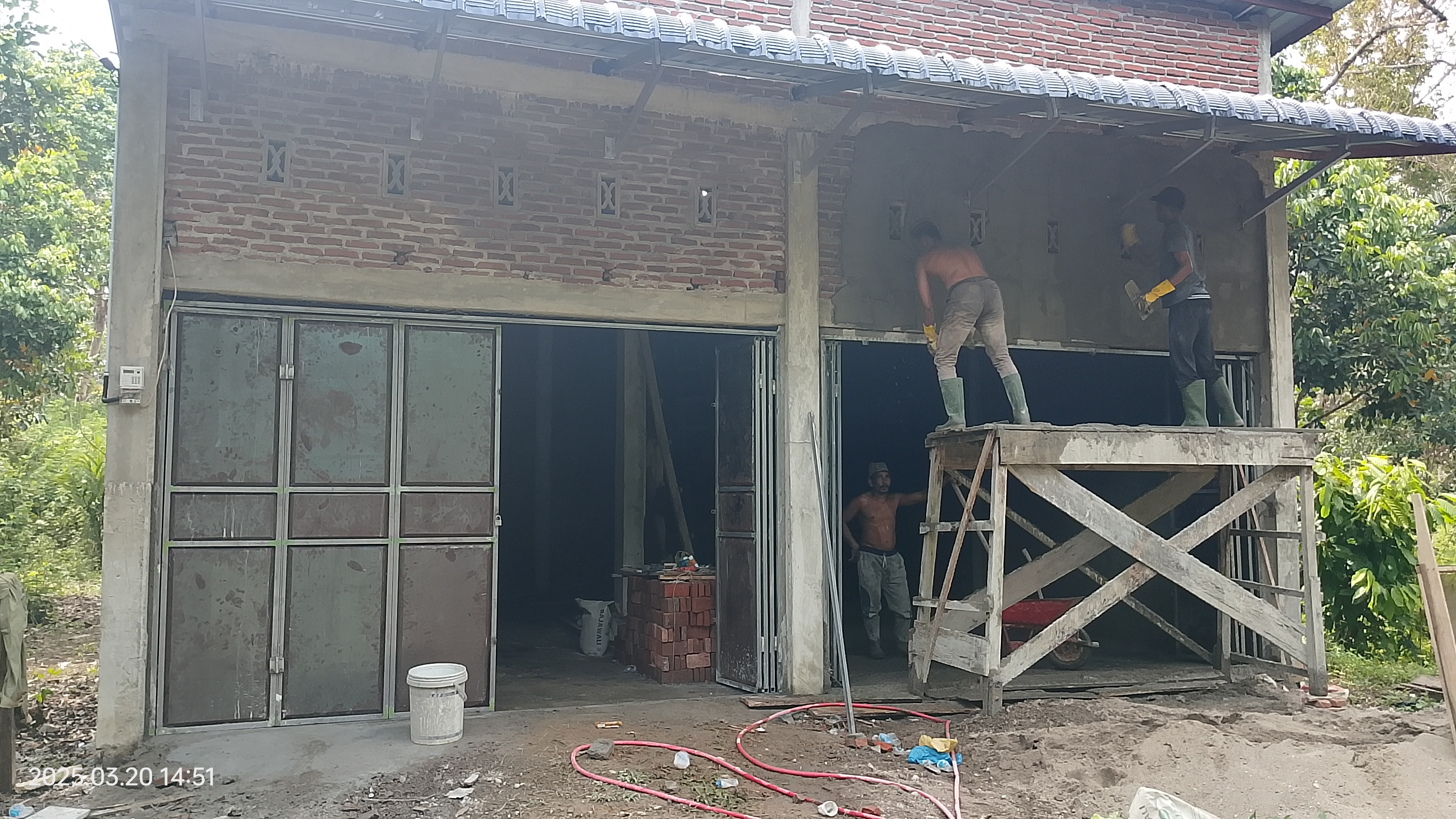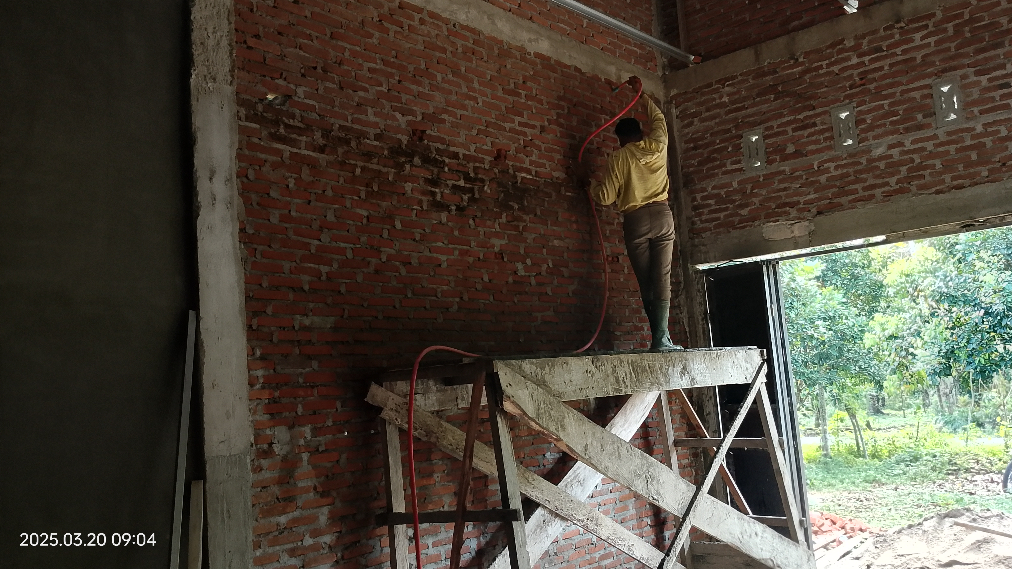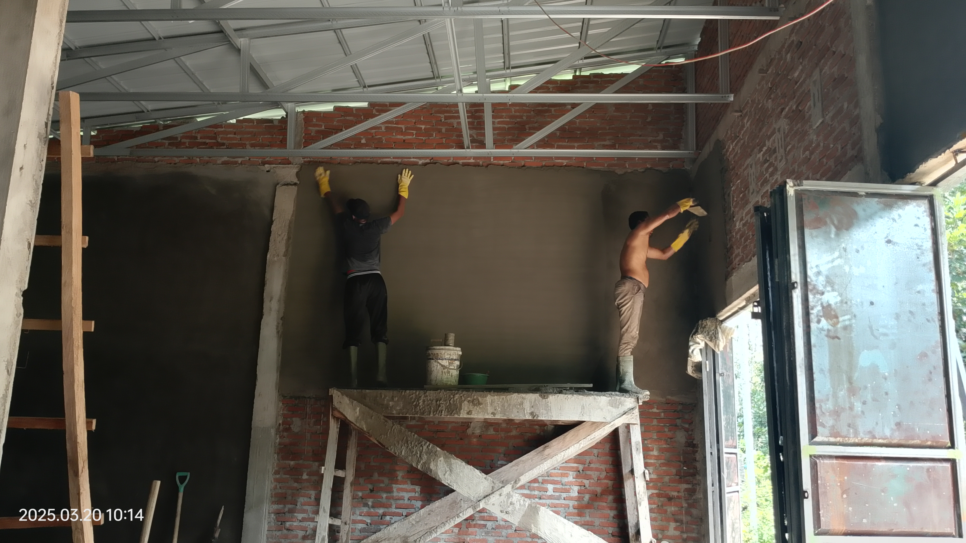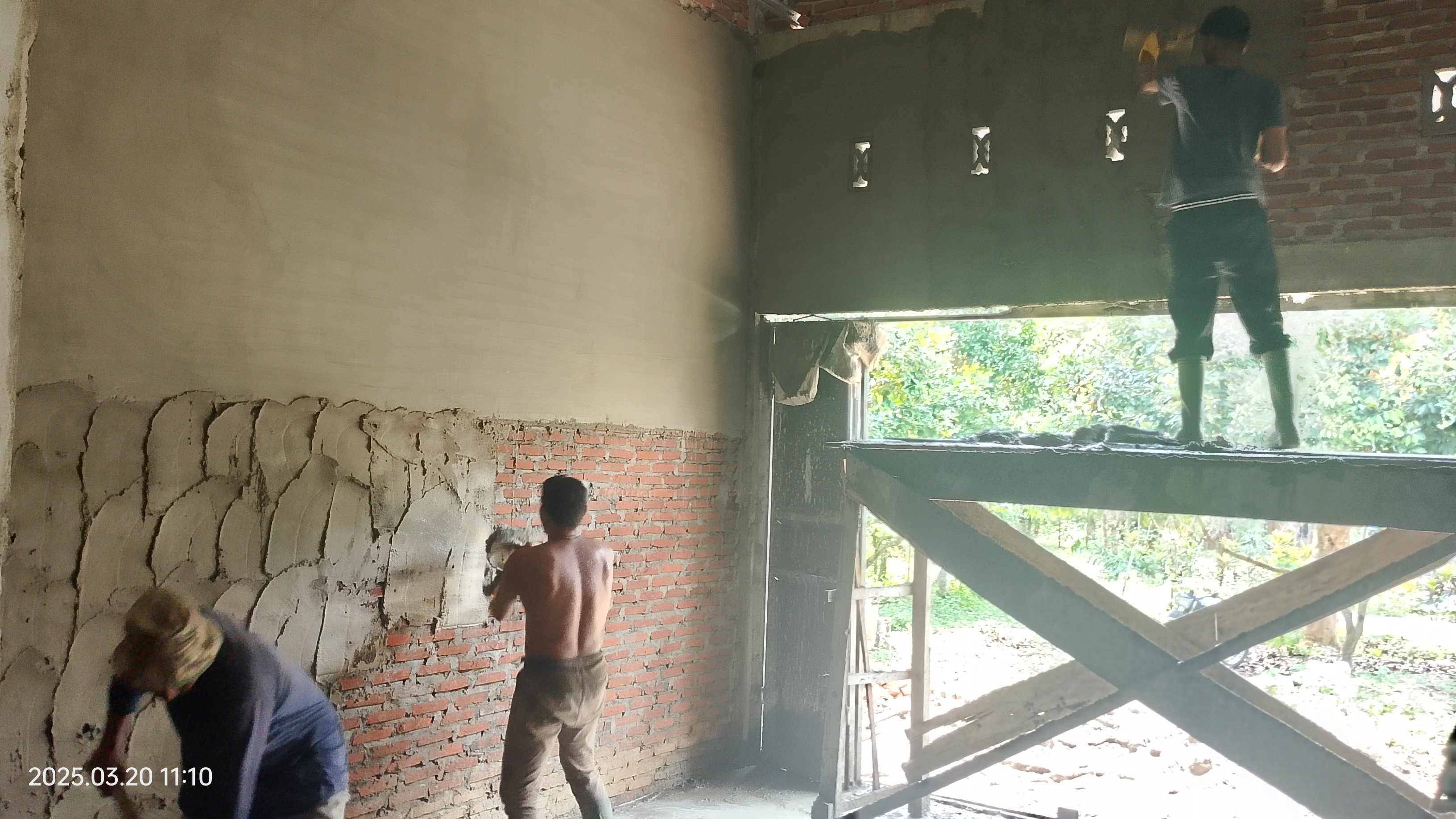 in this section, plastering is also done, and in this section, previously the calculation of payment for the work was not calculated, so, the calculation of paying the workers will be done tomorrow. maybe I have to find a little more additional costs to pay for the implementation of this plastering.