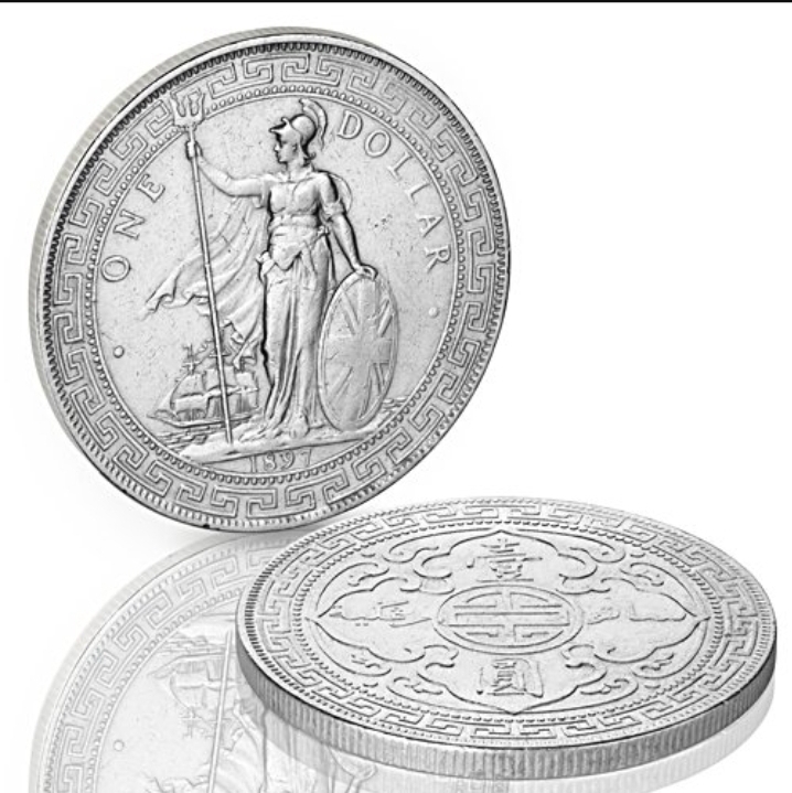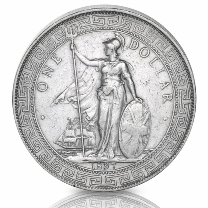 If you are looking at an 1897 silver trade dollar, you most likely have a British Trade Dollar. By 1897, the United States had long ceased production of its own Trade Dollars, making the British version the dominant silver coin for commerce in East Asia. These coins were minted primarily in Bombay and Calcutta and are easily identified by the striking image of a standing Britannia holding a trident and shield. The reverse is unique for its time, featuring the denomination in both Chinese characters and Malay script, reflecting its use in international shipping and trade hubs like Hong Kong and Singapore.