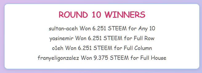 Good luck and have fun playing Steem-Bingo!