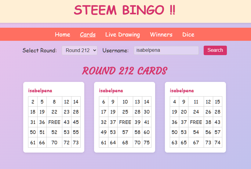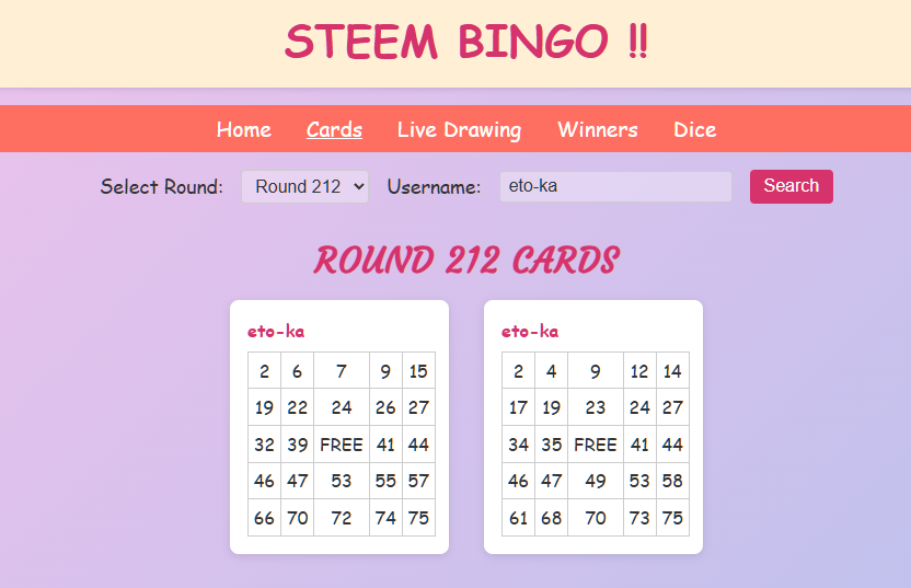 Your bingo cards for round 212