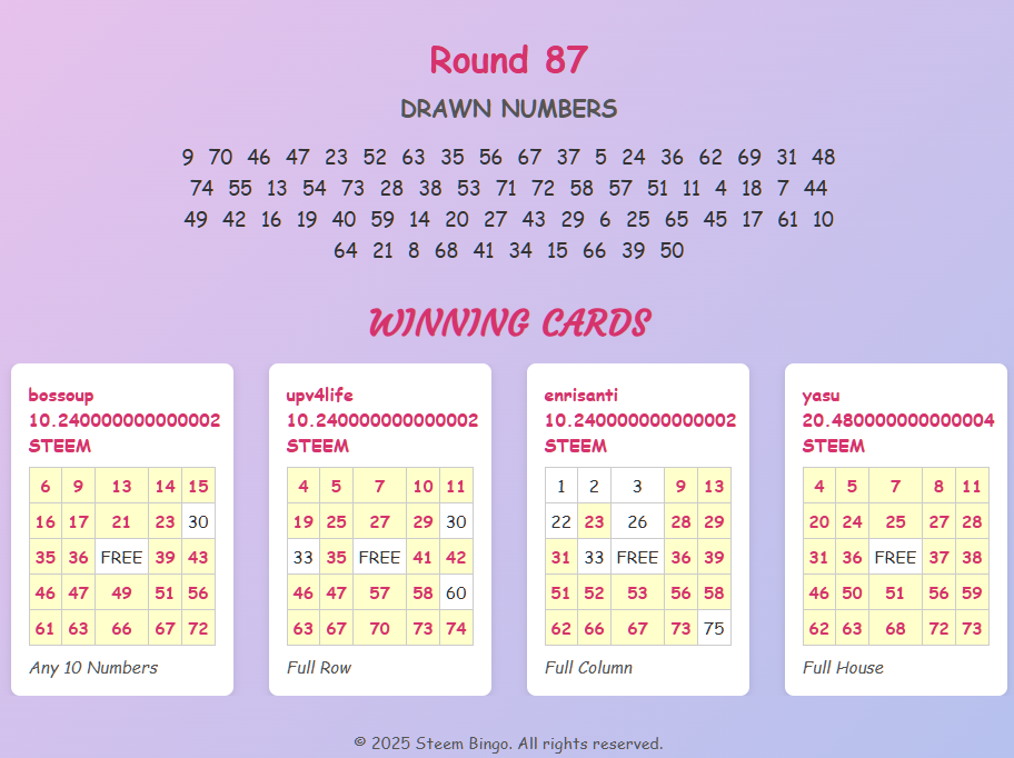 🛠 Developed and supported by @xpilar.witness and the Steem-Bingo project.