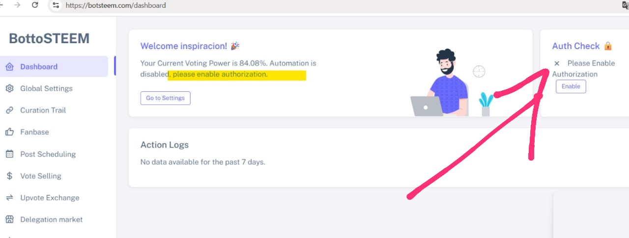 log in https://botsteem.com/dashboard