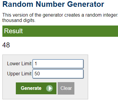 only be 50 numbers to choose from