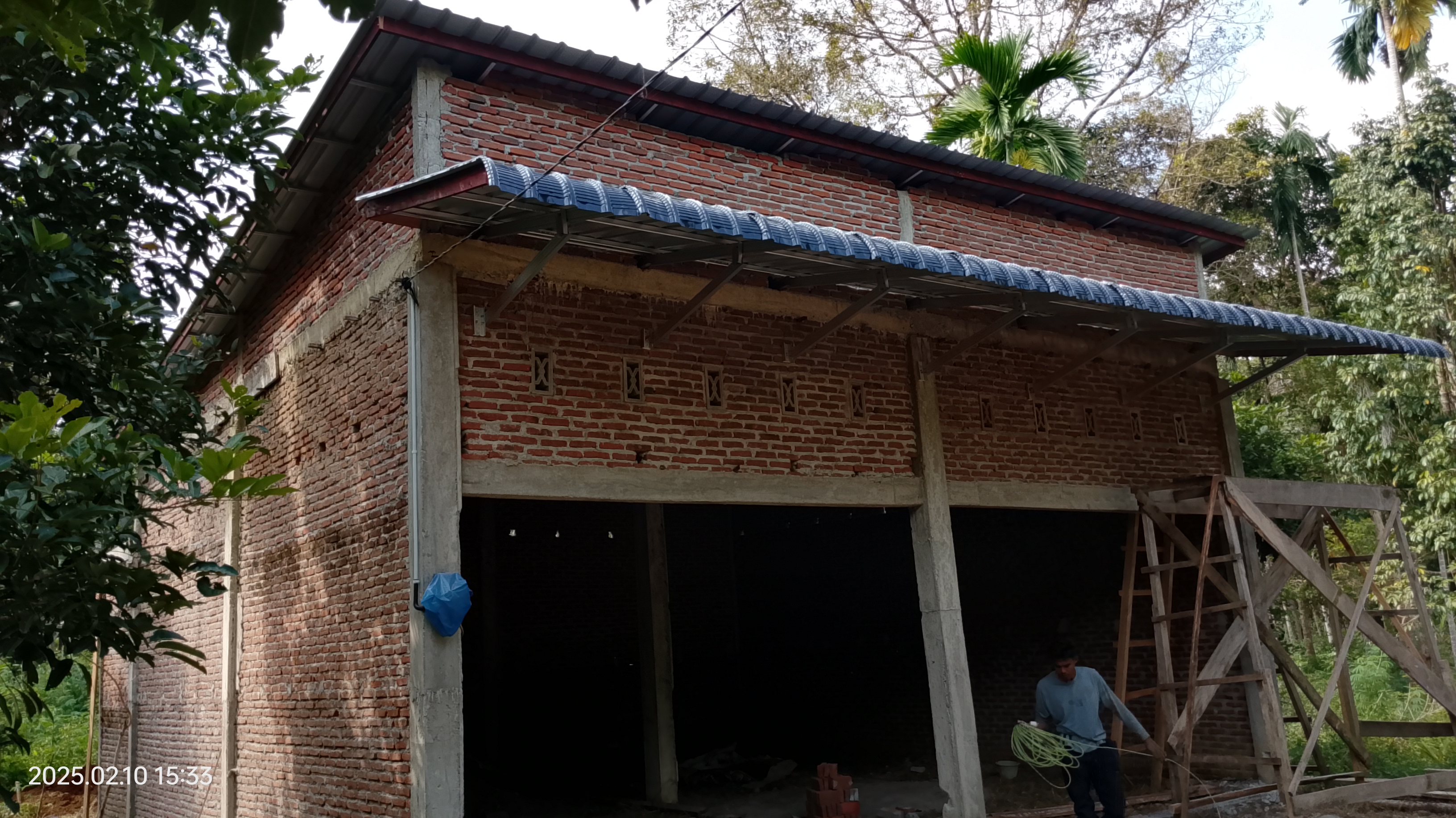 Now, the final roof has been laid, making the entire building more protected from rain and wind.
