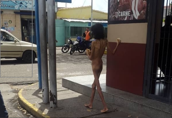 They say that an image says a thousand words. And I think it's like this picture is not Africa, this happens in Venezuela. Step today in a town in the East of Venezuela, in the Anzoategui State, largest producer of gas and oil. A young woman and a state of malnutrition, with mental problems wandering the streets, may have left her home without her family members realizing it.