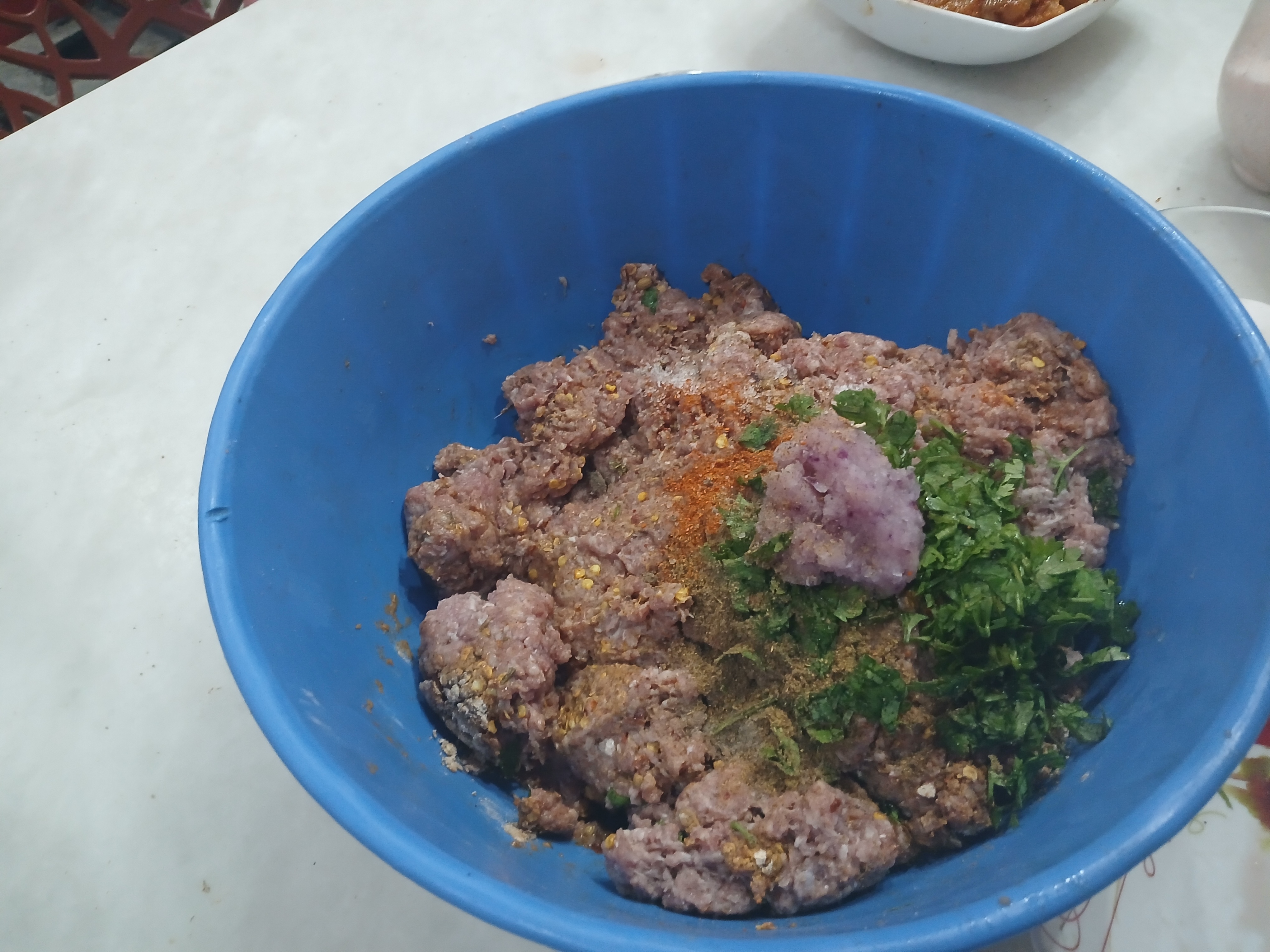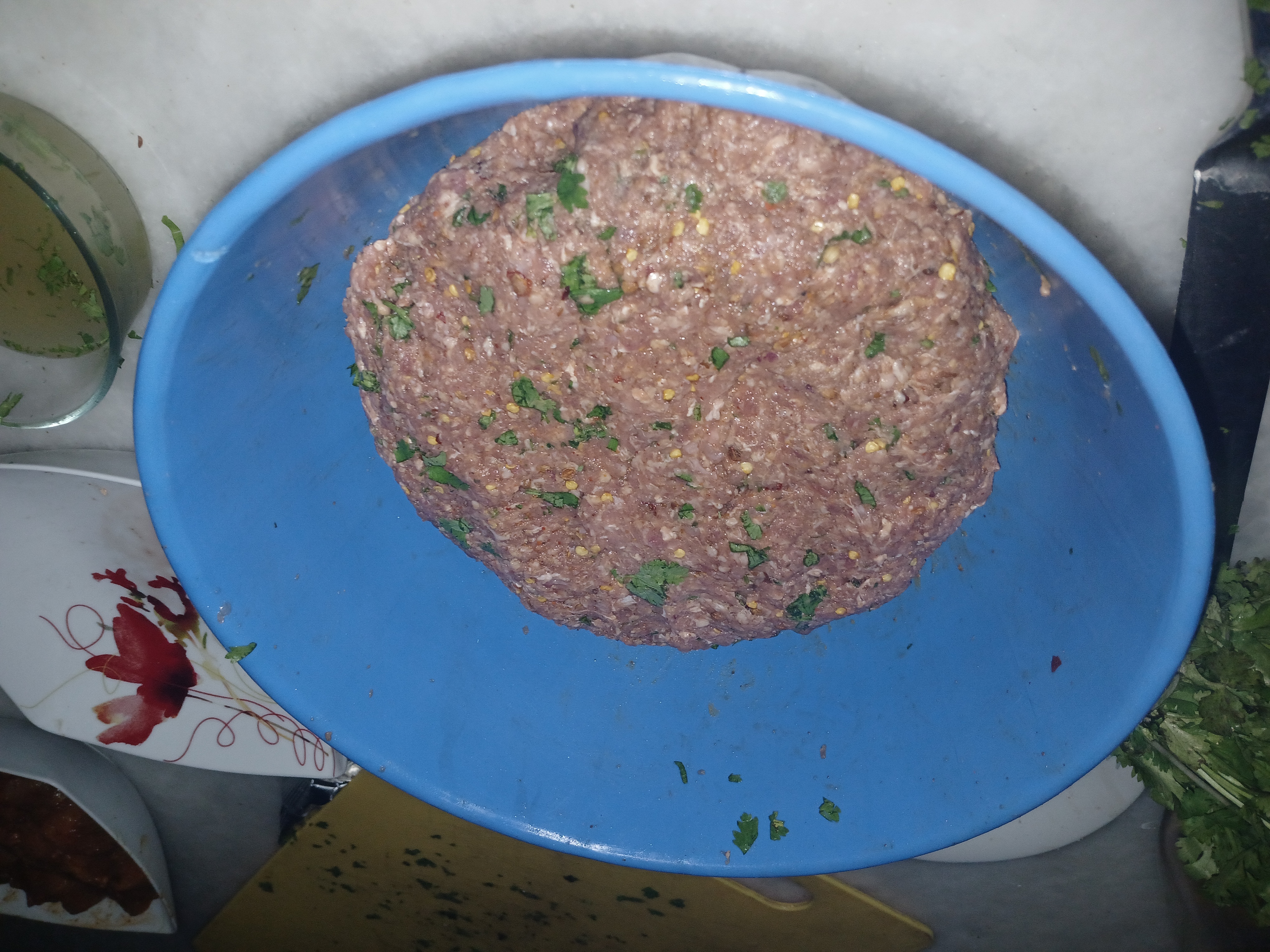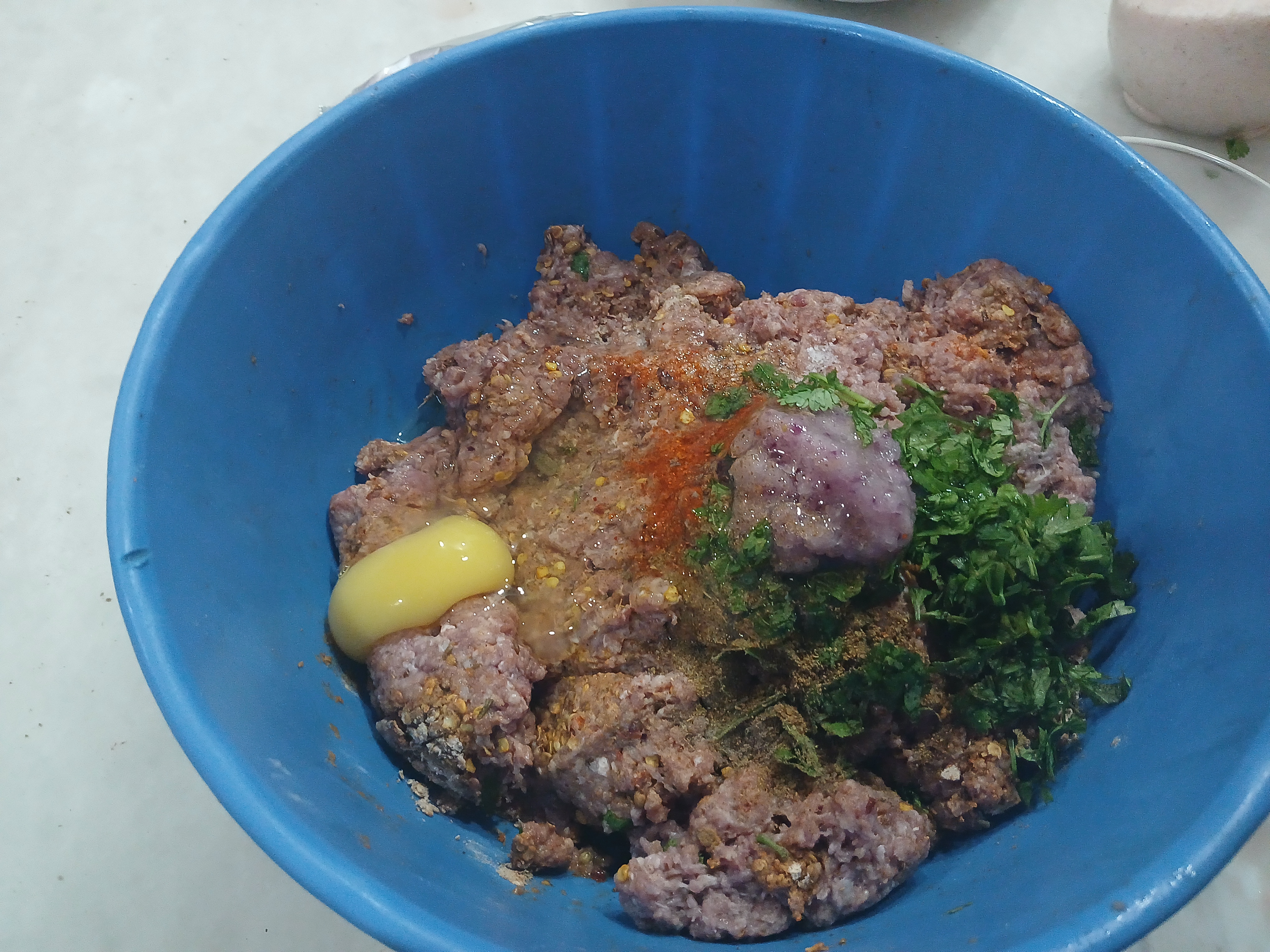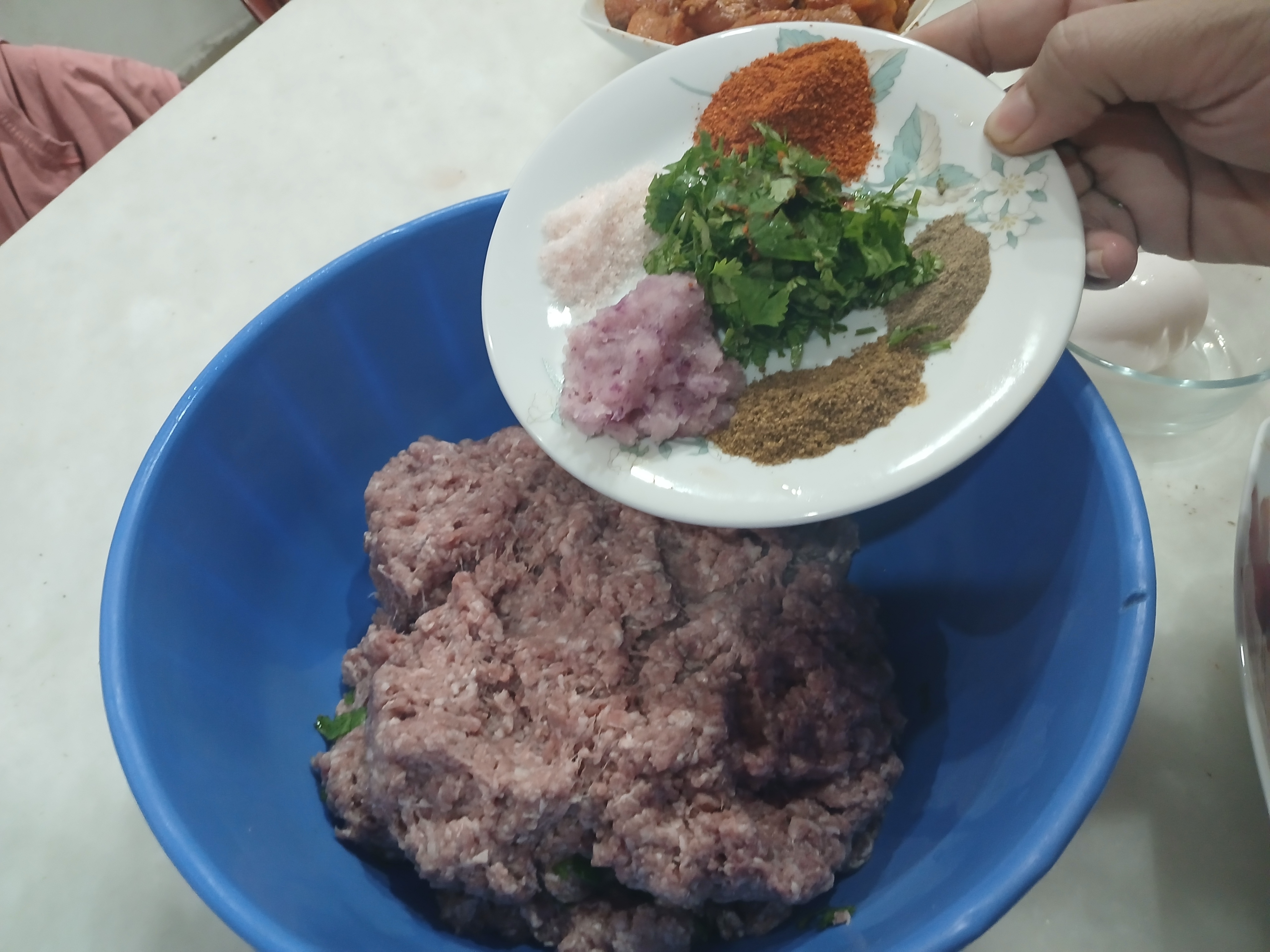 - Mixed all ingredients with mince. Take fine mince or Chopped it in food processor for fine balls , I don't like fine mince so I didn't Chopped in food processor. Marinate it for two hours.
