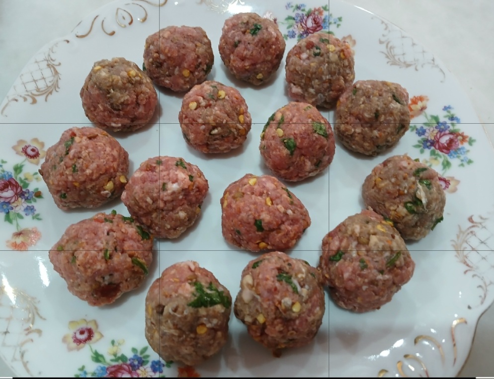 - Make small equal balls of meat and fry it . Fried meat balls should be keep over tissue paper to soak extra oil from them.