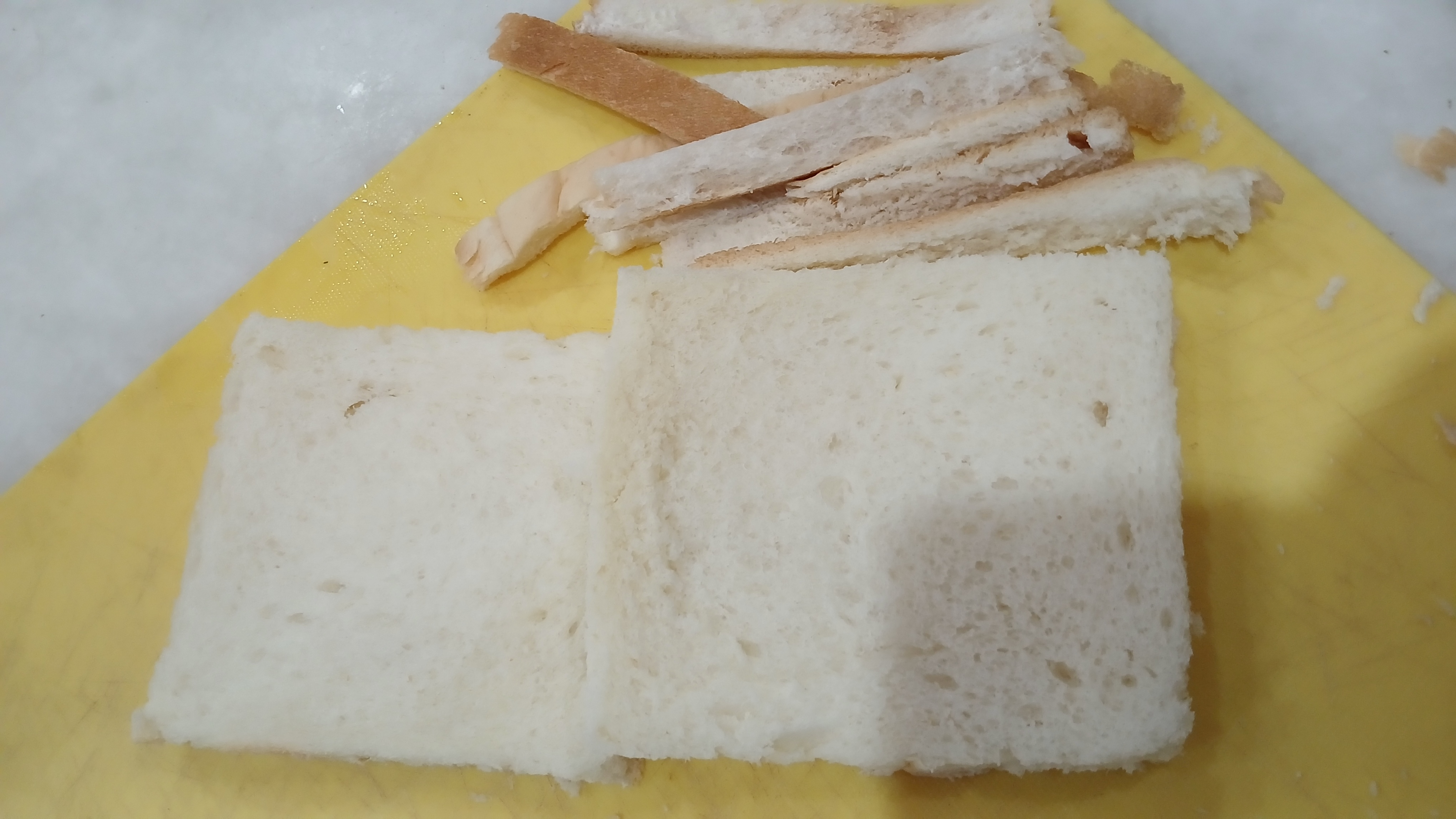 - Cut bread corners and keep them aside.