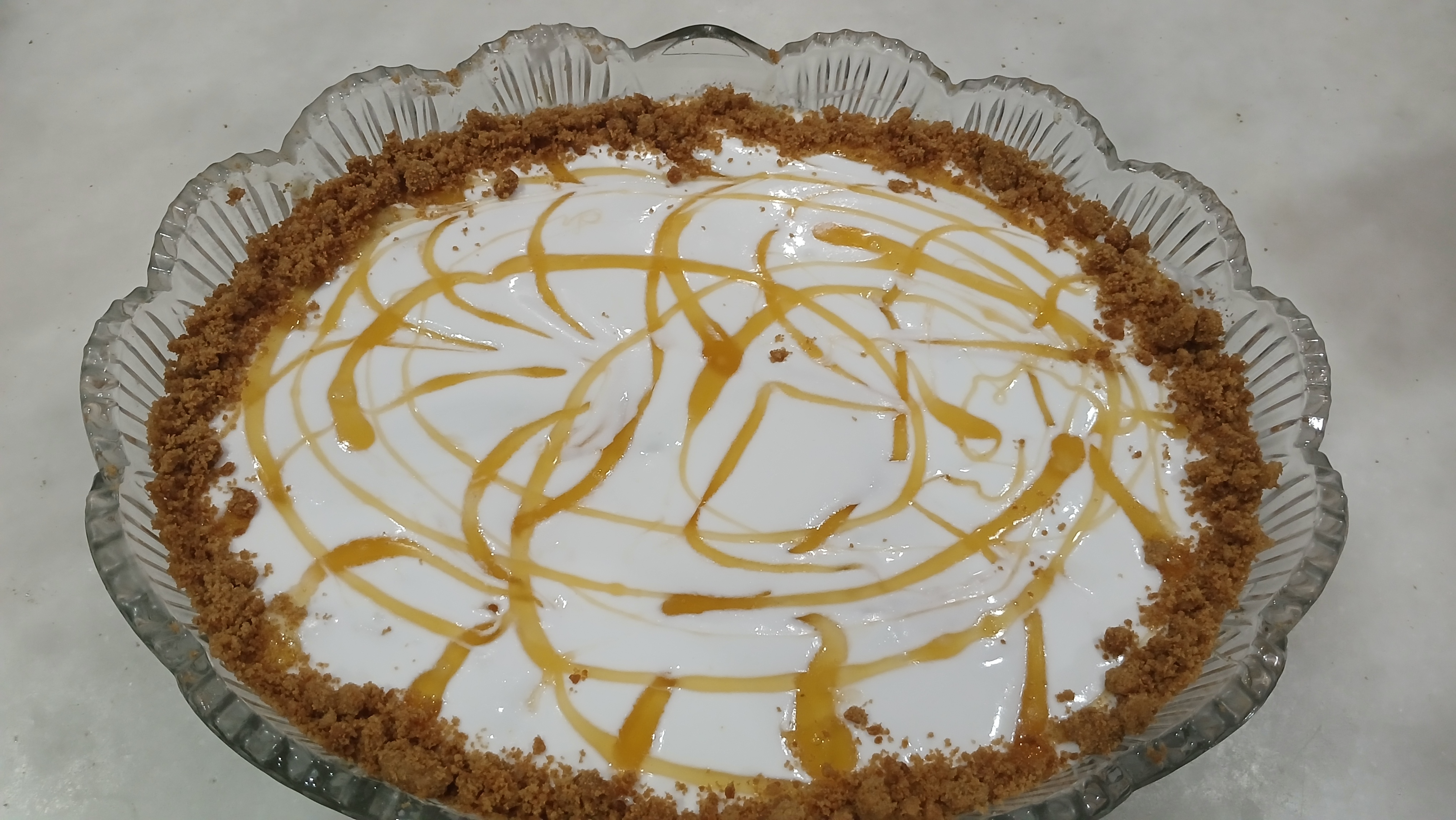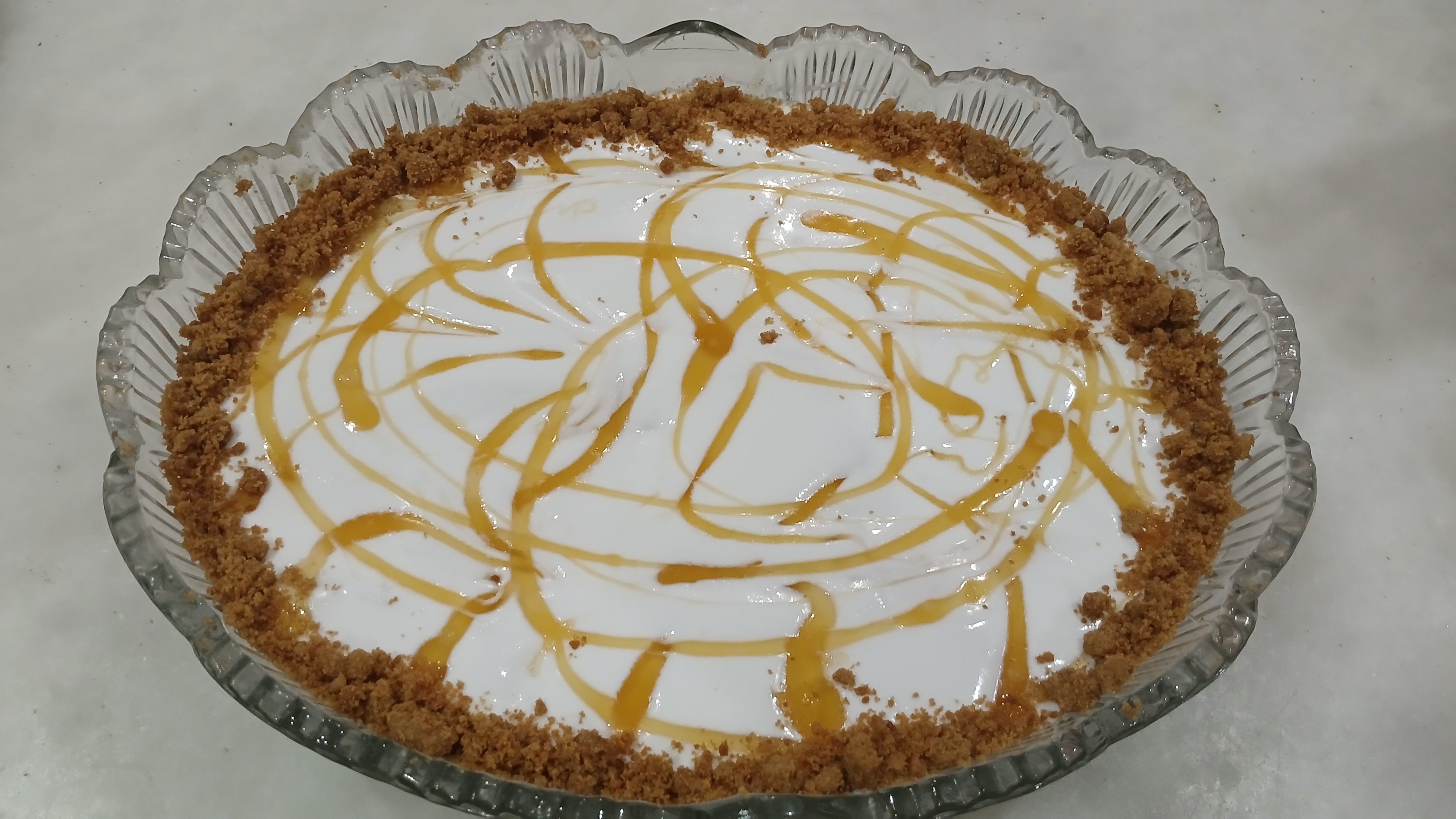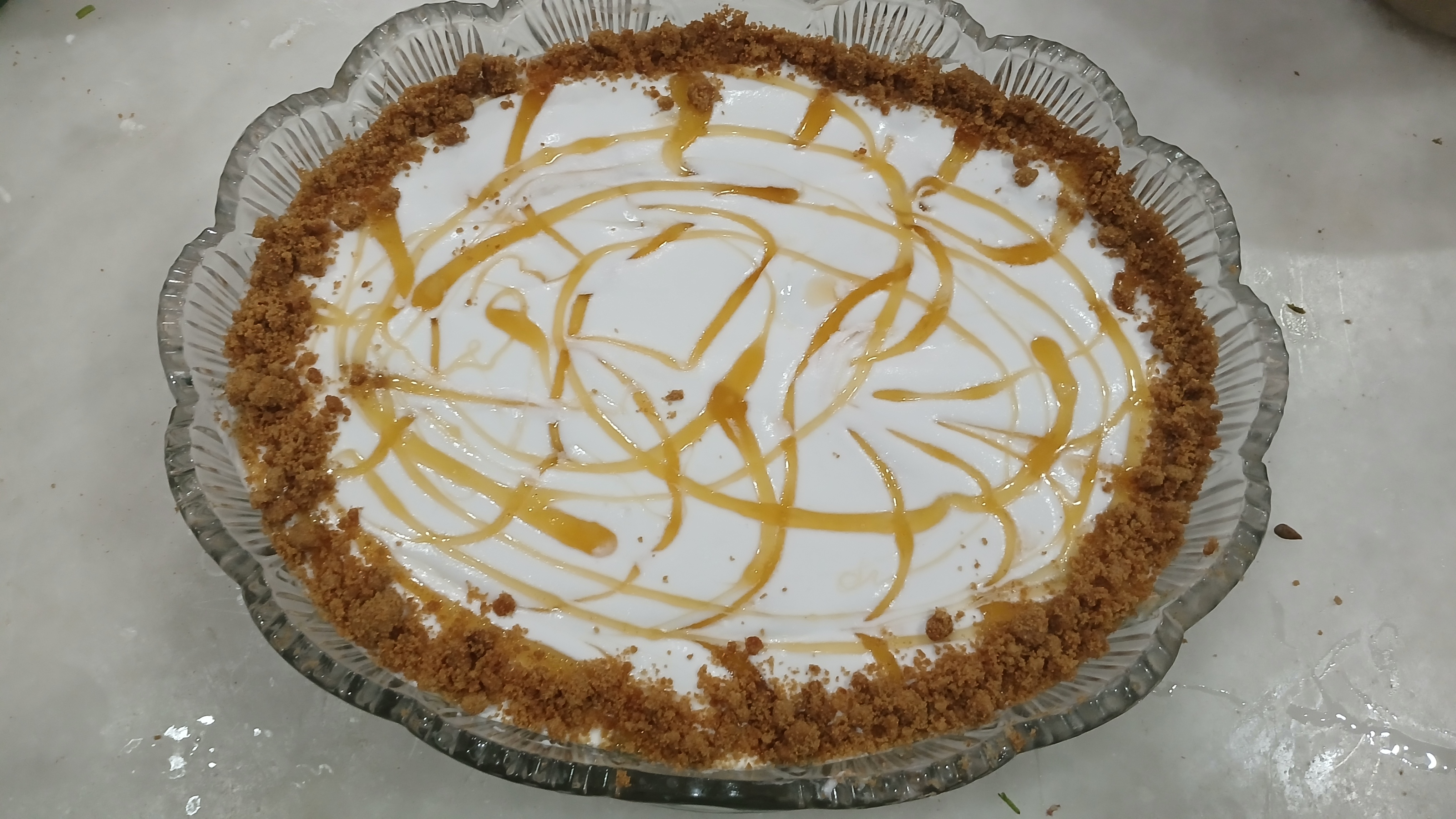- Add caremal sauce to make some pattern on it. I decorate it with cooki crumbs to give it more attractive look.
