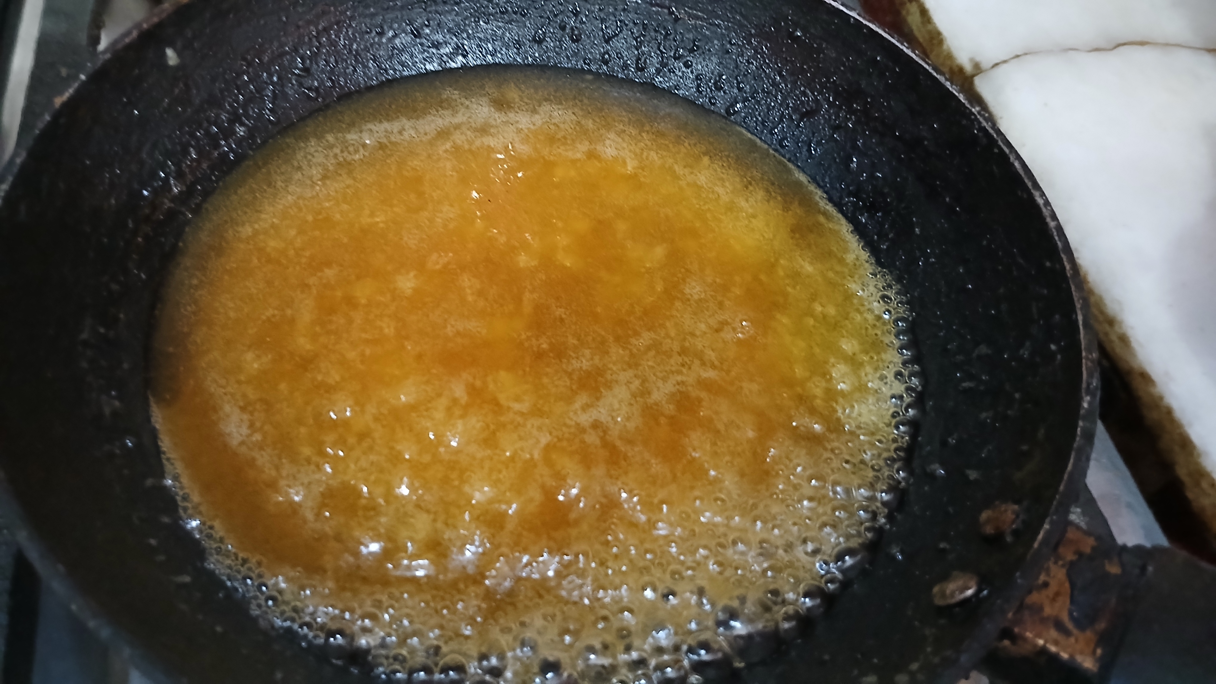 - Add sugar in a pan and add some water and let it cook on low flame, after 2-3min sugar gets started to melt, after few minutes it caramelised then add 1tbsp butter or 1tbsp cream , I used butter.
