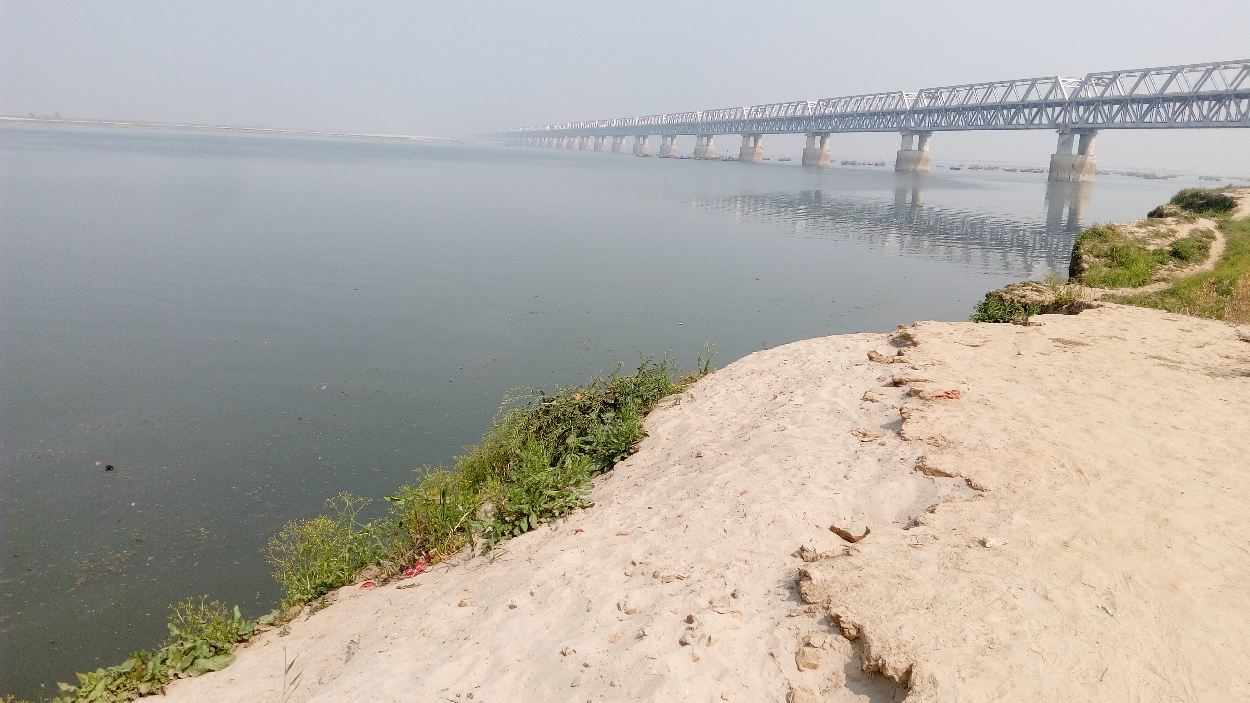 This is the newly constructed bridge named J.P. Setu ('setu' is the Hindi word for 'bridge'). It is a rail-cum-road bridge that connects Digha Ghat in Patna and Pahleja Ghat in Sonpur. It is built over the Ganges. During the floods, one can observe the fierce volume of the river from the bridge.