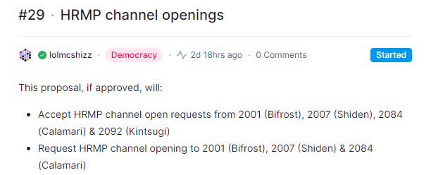 - Accept HRMP channel open requests from 2001 (Bifrost), 2007 (Shiden), 2084 (Calamari) & 2092 (Kintsugi)