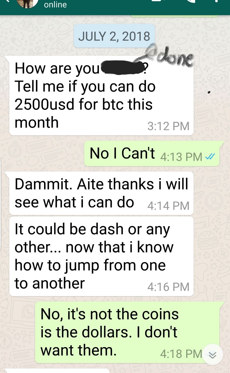 This monthly exercise went on for a few months and I started to buy the bitcoins for him ahead of time. He did wonder why I was not counting his money before leaving, and asked about it. I told him, "It is simple, if anyone shorts me, the next deal will not happen."