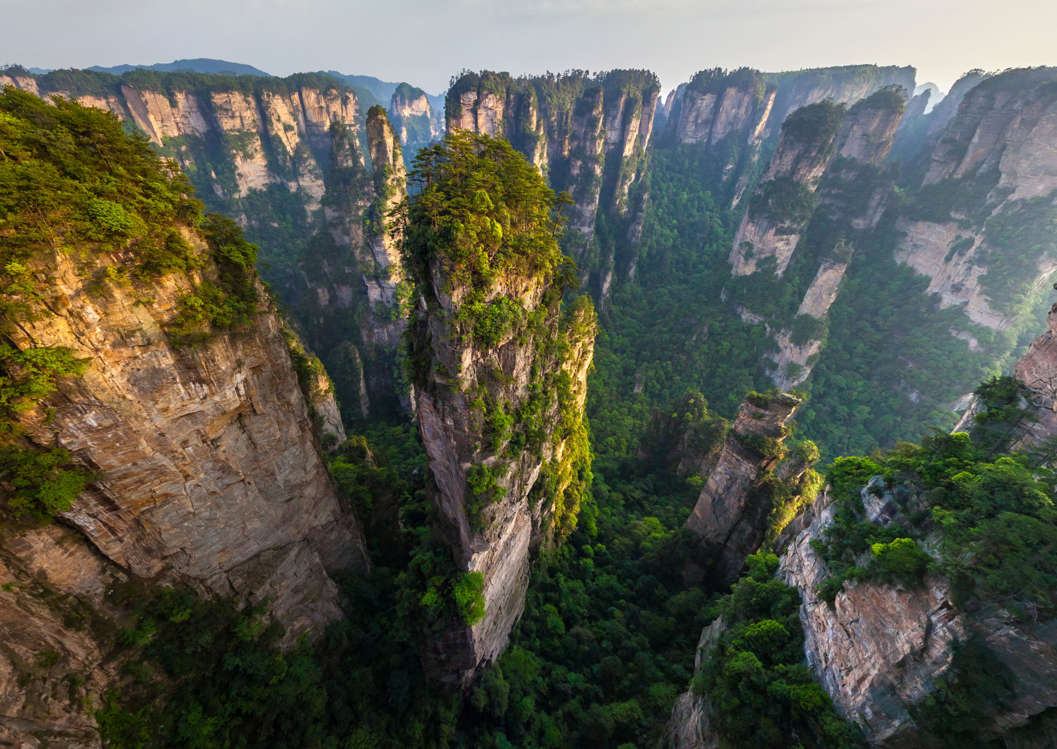 장가계 국립공원은 골짜기 바닥에서부터 하늘에 닿을 듯 높이 솟은 거대한 사암 봉우리로 유명합니다. 또한 이 산의 돌기둥은 영화 "아바타"의 둥둥 떠다니는 산의 모티프가 되기도 했습니다. 톈즈산, 아바타의 할렐루야산, 금편계곡은 장가계 국립공원에서 꼭 방문해봐야 할 장소입니다.