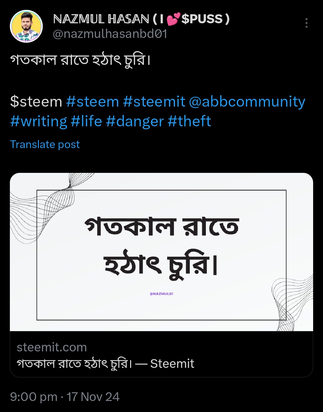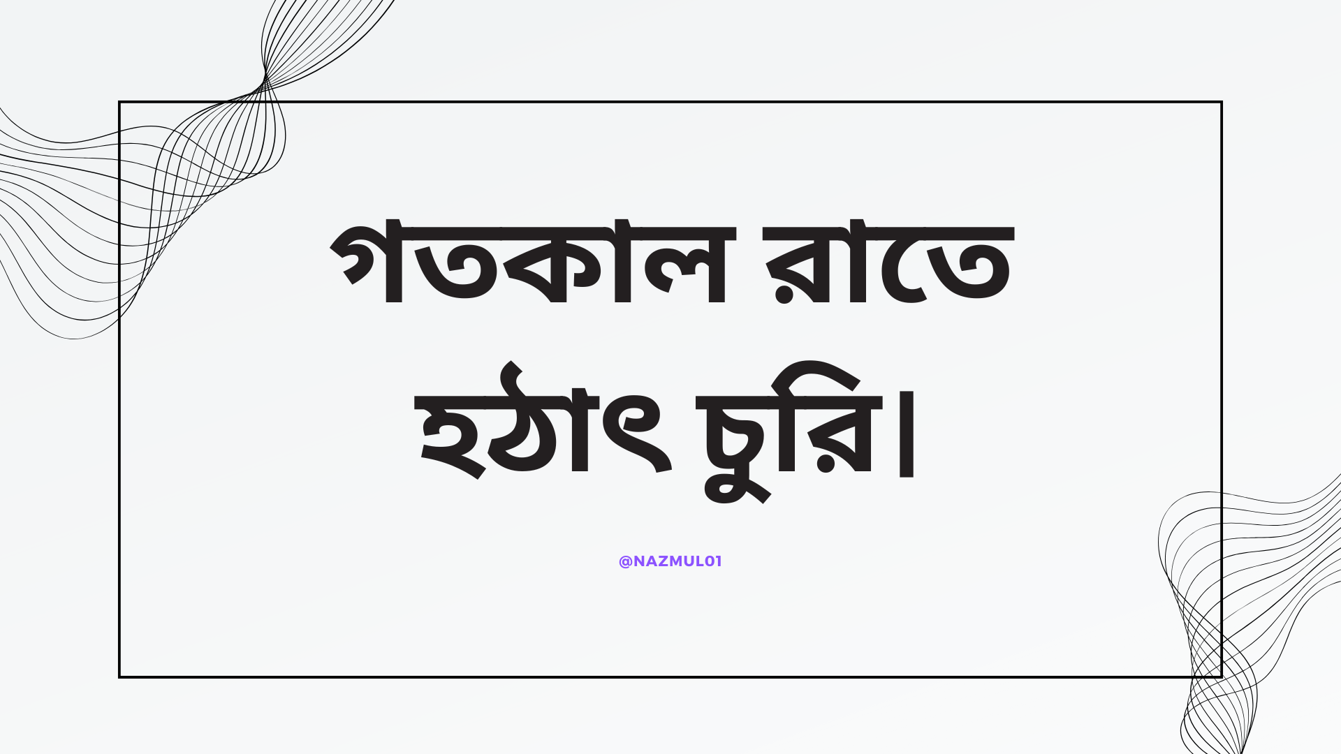 বিভাগ জেনারেল রাইটিং। ডিভাইস শাওমি রেডমি ৯। বিষয় গতকাল রাতে হঠাৎ চুরি। লোকেশন ময়মনসিংহ সদর, বাংলাদেশ। রাইটার @nazmul01।