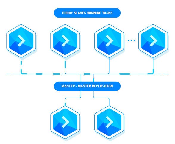 These are Buddy instances that are used for the development and deployment automation. These instances automatically decide on their roles and can be replaced to provide a high availability and scalability. By using Private Automation GRID, application developers and organizations can be able to automate the whole development and deployment process. This means that the automation process offered by Bubby would be capable of running a local or private hardware environment. The first two instances of Buddy that are created are of master type to ensure the availability of the system and the others that are created are parallel slave instances, as seen in the following image.