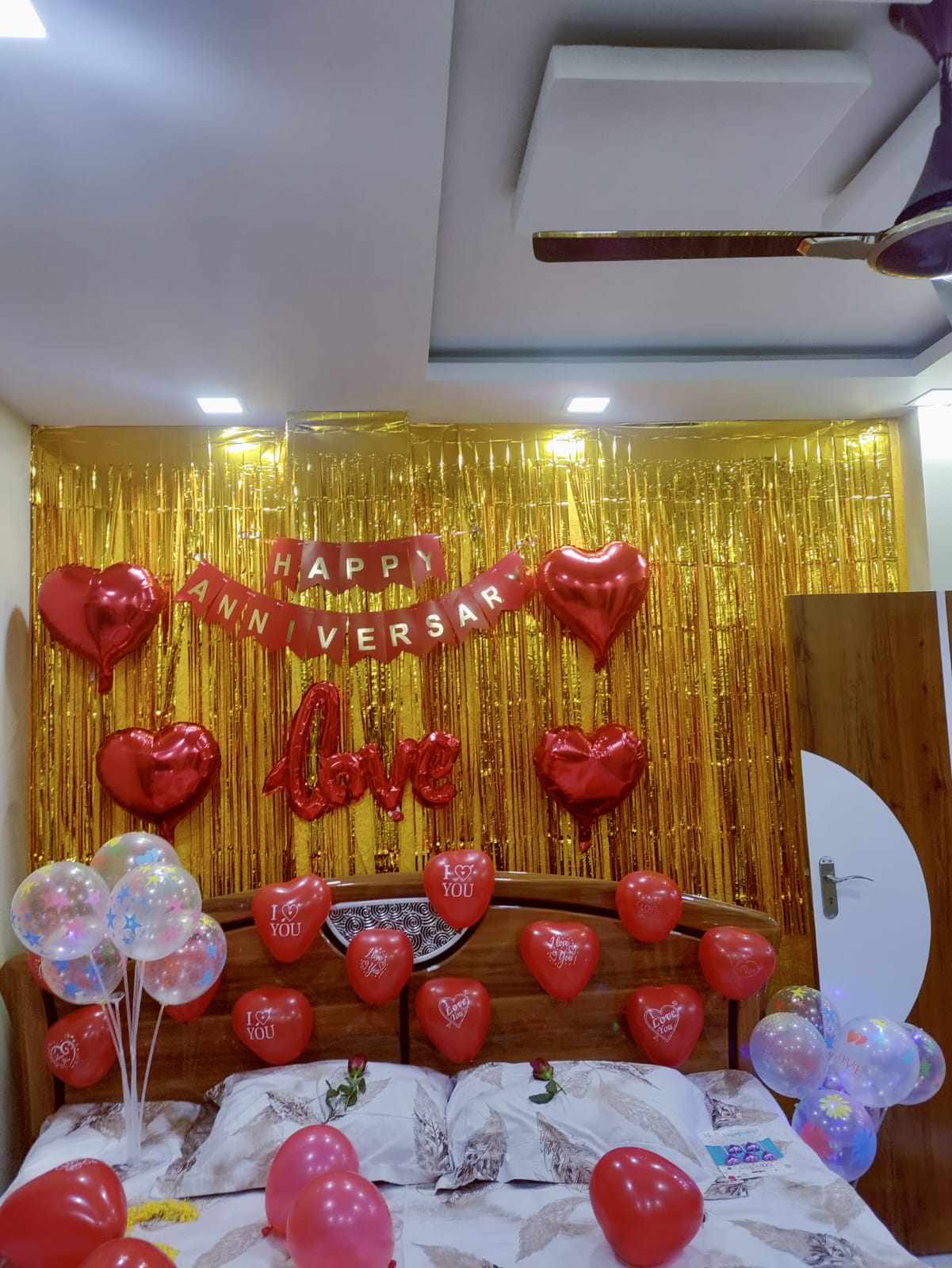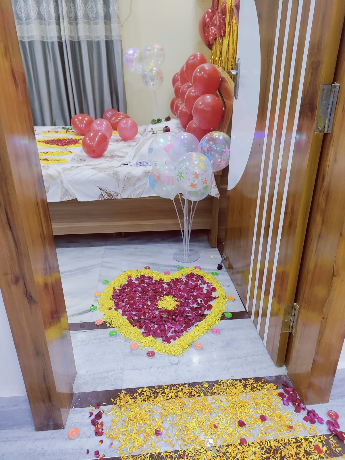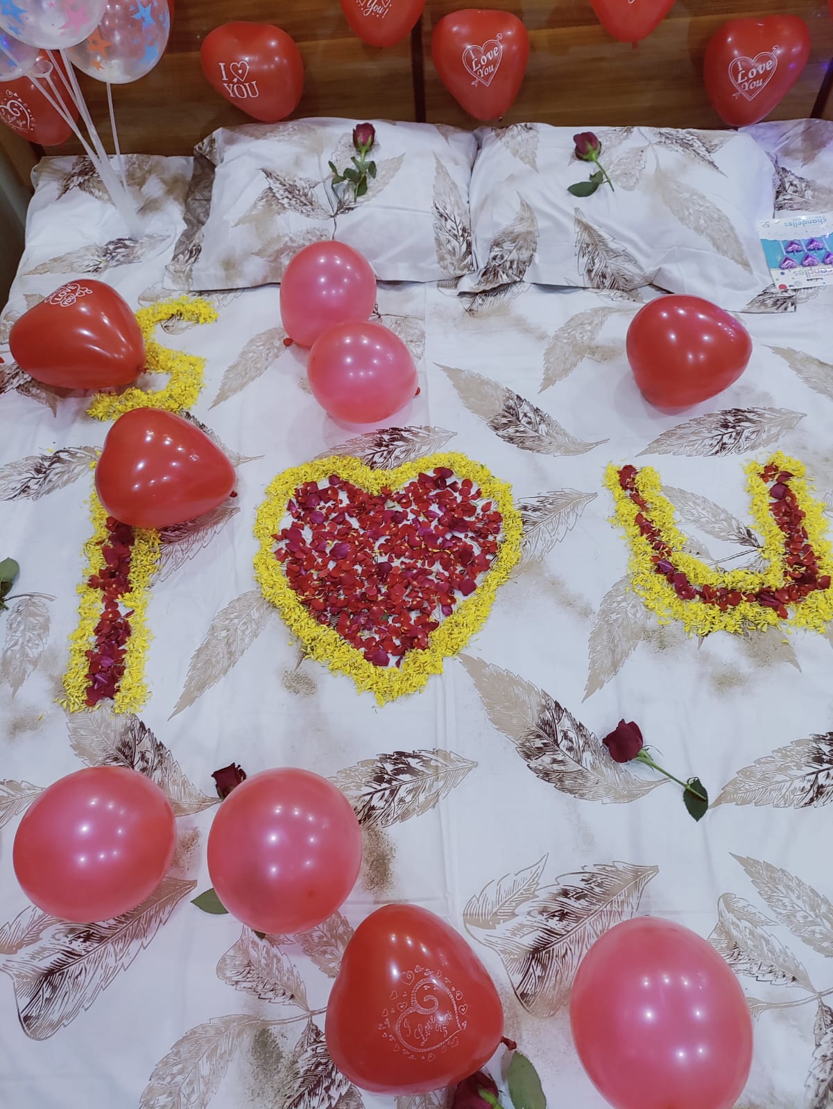 প্রথম প্ল্যান করলাম ওদের দুজনকে আগের দিন রাত ১২ টার পর সারপ্রাইজ দিবো। ওদের দুজনের জন্য ফুল আর বেলুন দিয়ে ঘর সাজাবো। আর ওরা যখন ঘরে ঢুকবে তখন ওদের কে গোলাপ দিয়ে বরণ করা হবে আর ফুলের পাপড়ির উপর দিয়ে হেঁটে যাবে। সেই জন্য ওরা আমাকে অনেক গোলাপ ফুল, গাঁদা ফুল, ও ছোট ছোট ক্যান্ডেল এনে দিলো। আর আমি আগ থেকে বিভিন্ন রকমের বেলুন অর্ডার করেছিলাম।