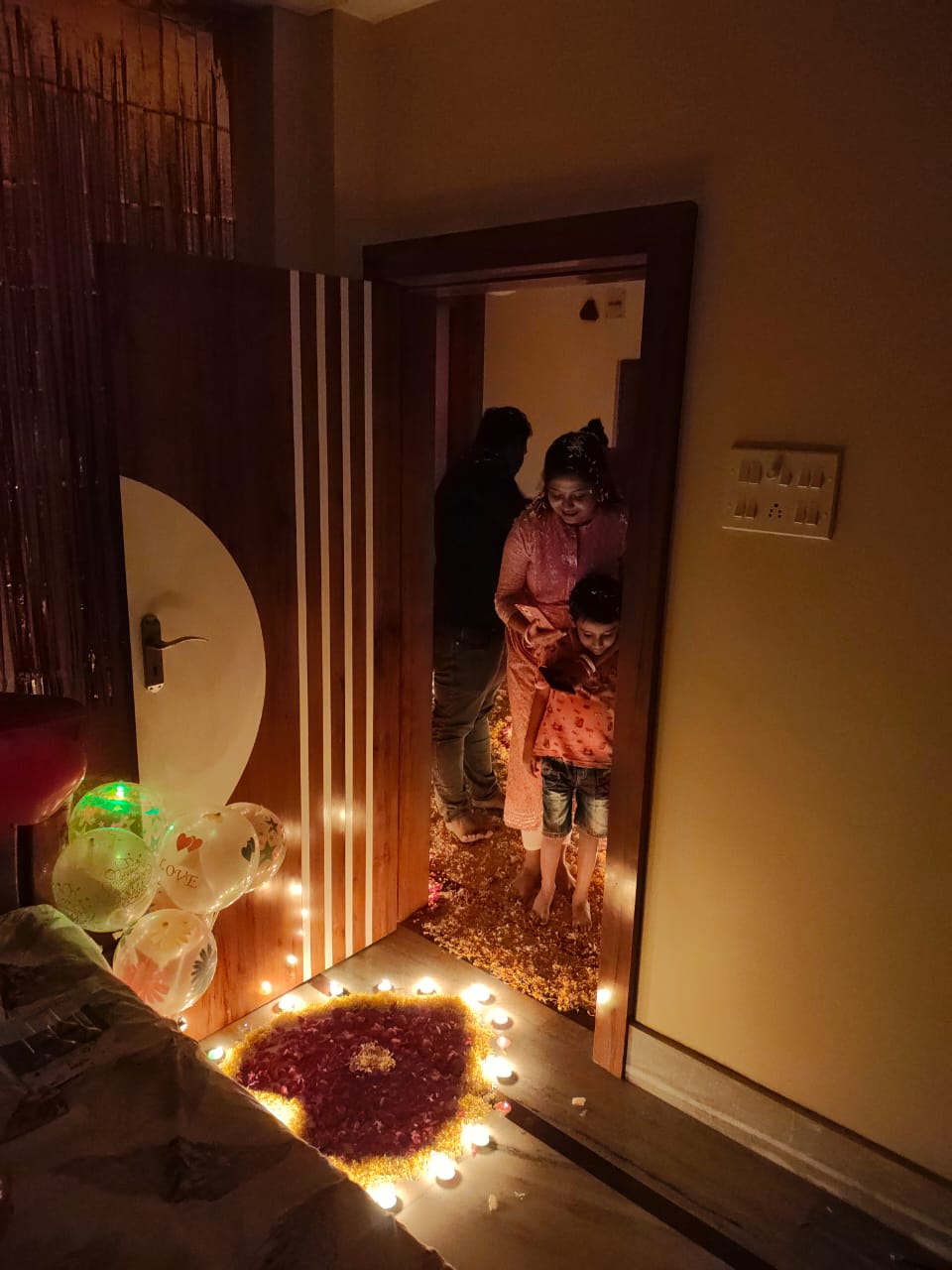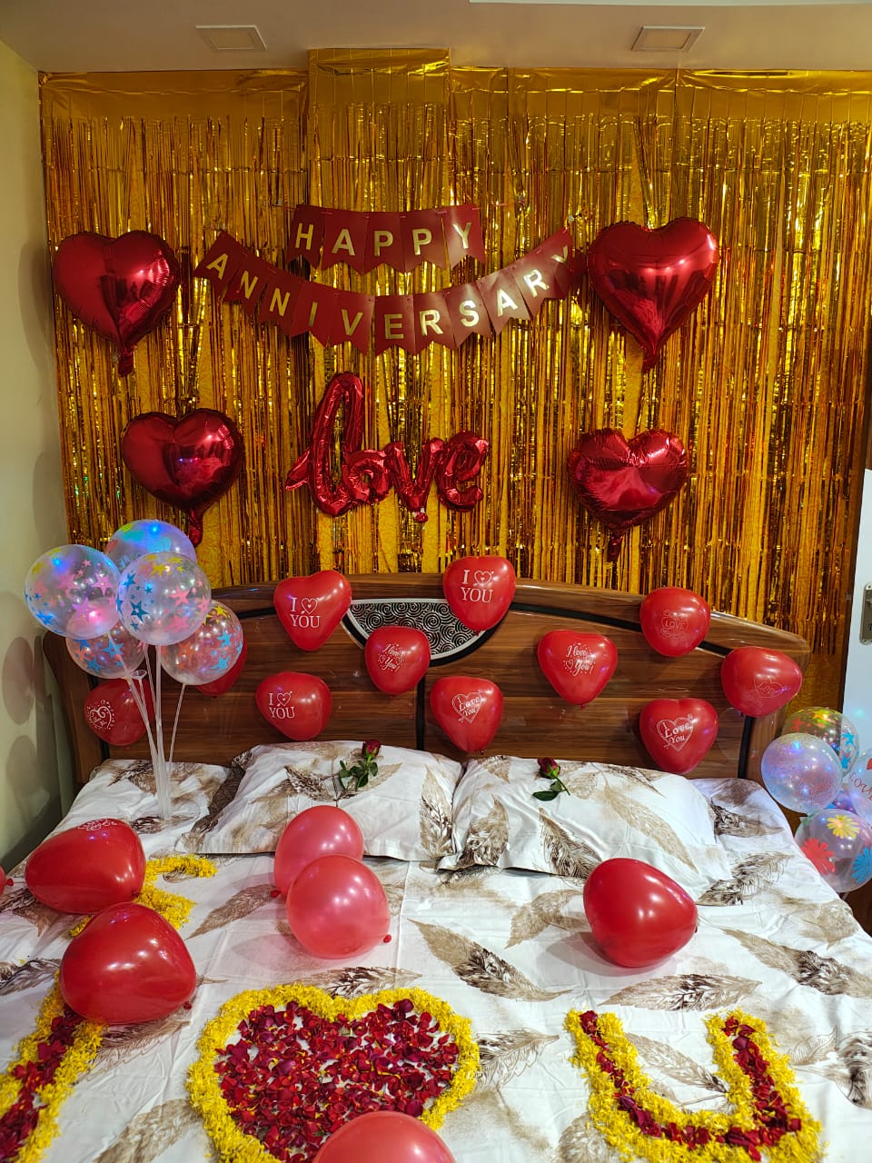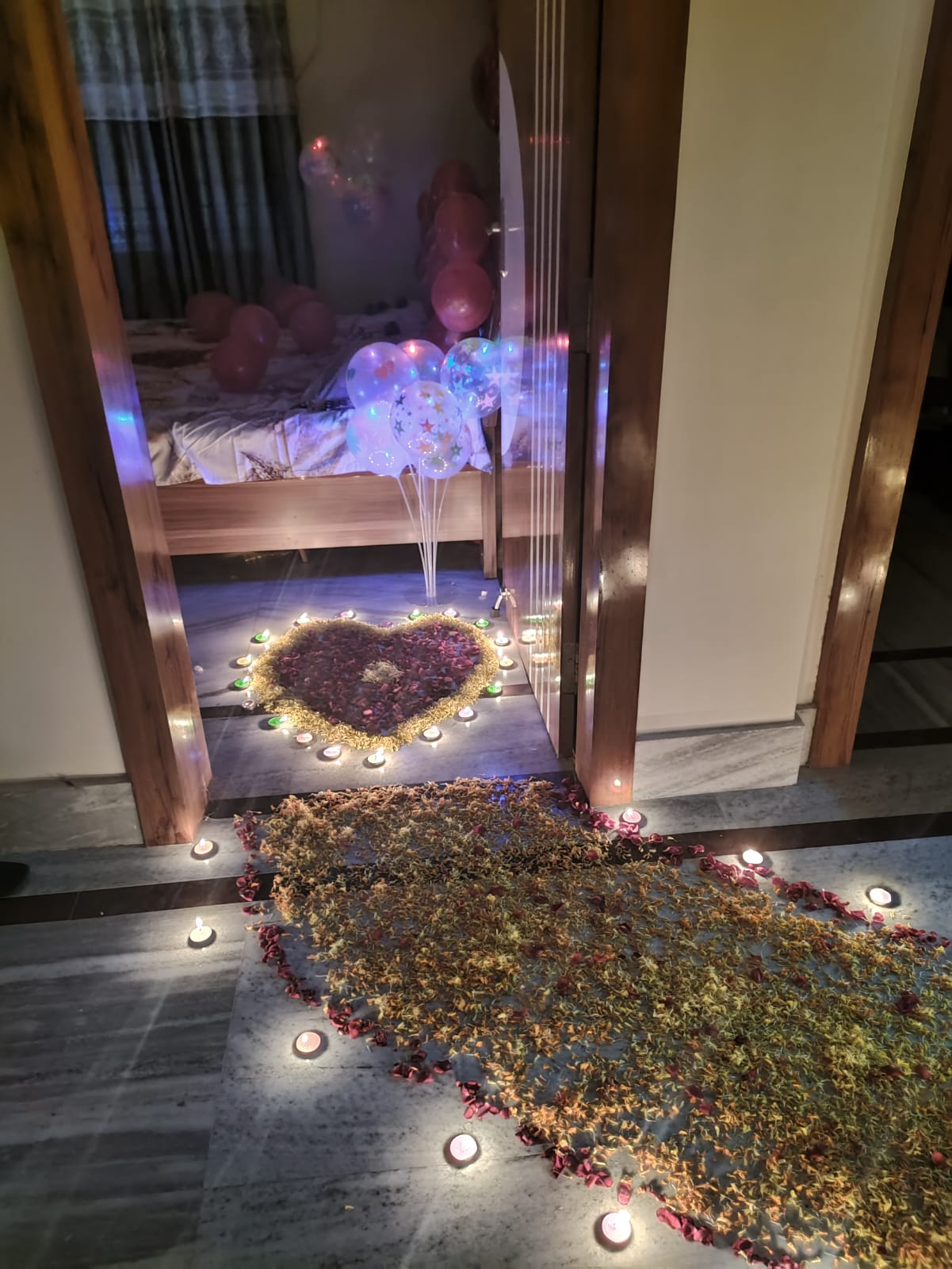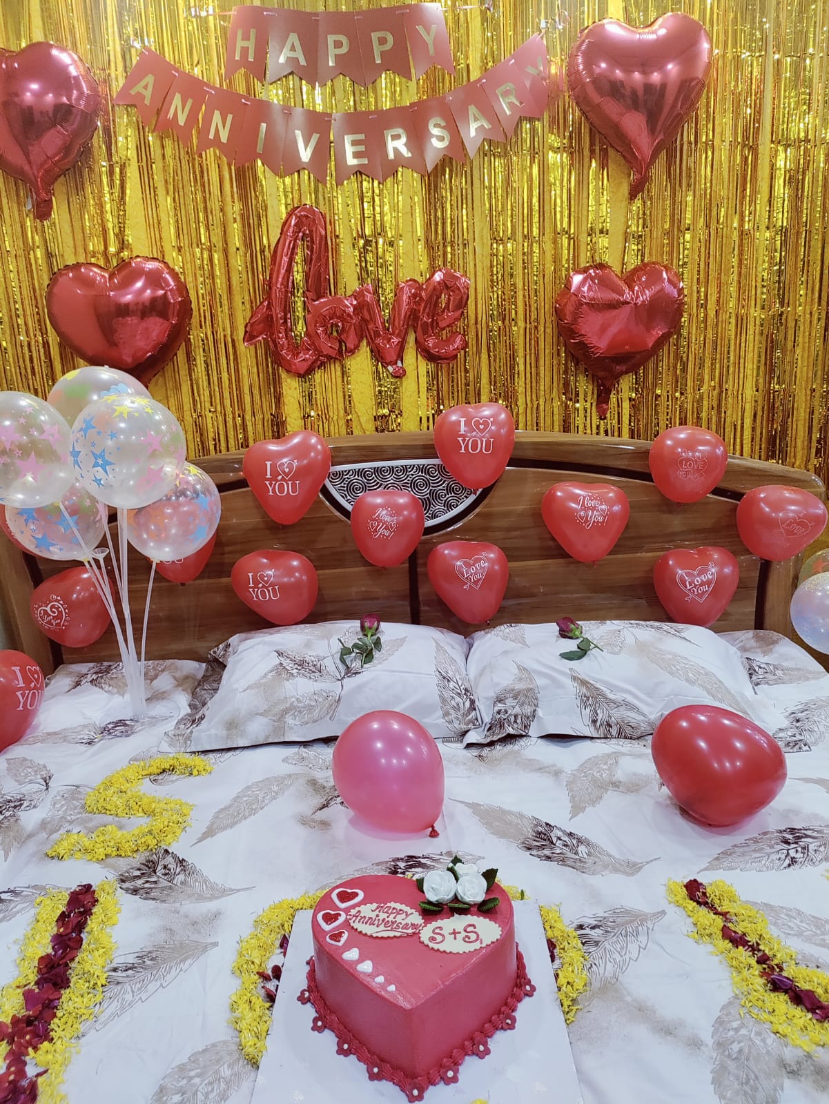 প্রথম প্ল্যান করলাম ওদের দুজনকে আগের দিন রাত ১২ টার পর সারপ্রাইজ দিবো। ওদের দুজনের জন্য ফুল আর বেলুন দিয়ে ঘর সাজাবো। আর ওরা যখন ঘরে ঢুকবে তখন ওদের কে গোলাপ দিয়ে বরণ করা হবে আর ফুলের পাপড়ির উপর দিয়ে হেঁটে যাবে। সেই জন্য ওরা আমাকে অনেক গোলাপ ফুল, গাঁদা ফুল, ও ছোট ছোট ক্যান্ডেল এনে দিলো। আর আমি আগ থেকে বিভিন্ন রকমের বেলুন অর্ডার করেছিলাম।