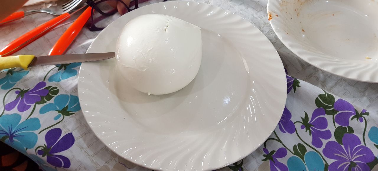 Appena tornato a casa dai miei ho chiesto a mio padre di portarmi una mozzarella fresca e cosi ha fatto... una bomba di mozzarella di circa mezzo kilo (0.5kg) che dopo un piatto di pasta, antipasti, pane, secondo etc... diciamo che era un pò troppo, ma avevo in testa il fatto che non l'avrei mangiata di nuovo per molto molto tempo quindi mi sono strafocato tutto quello che potevo anche se questo voleva dire dover rotolare a casa.