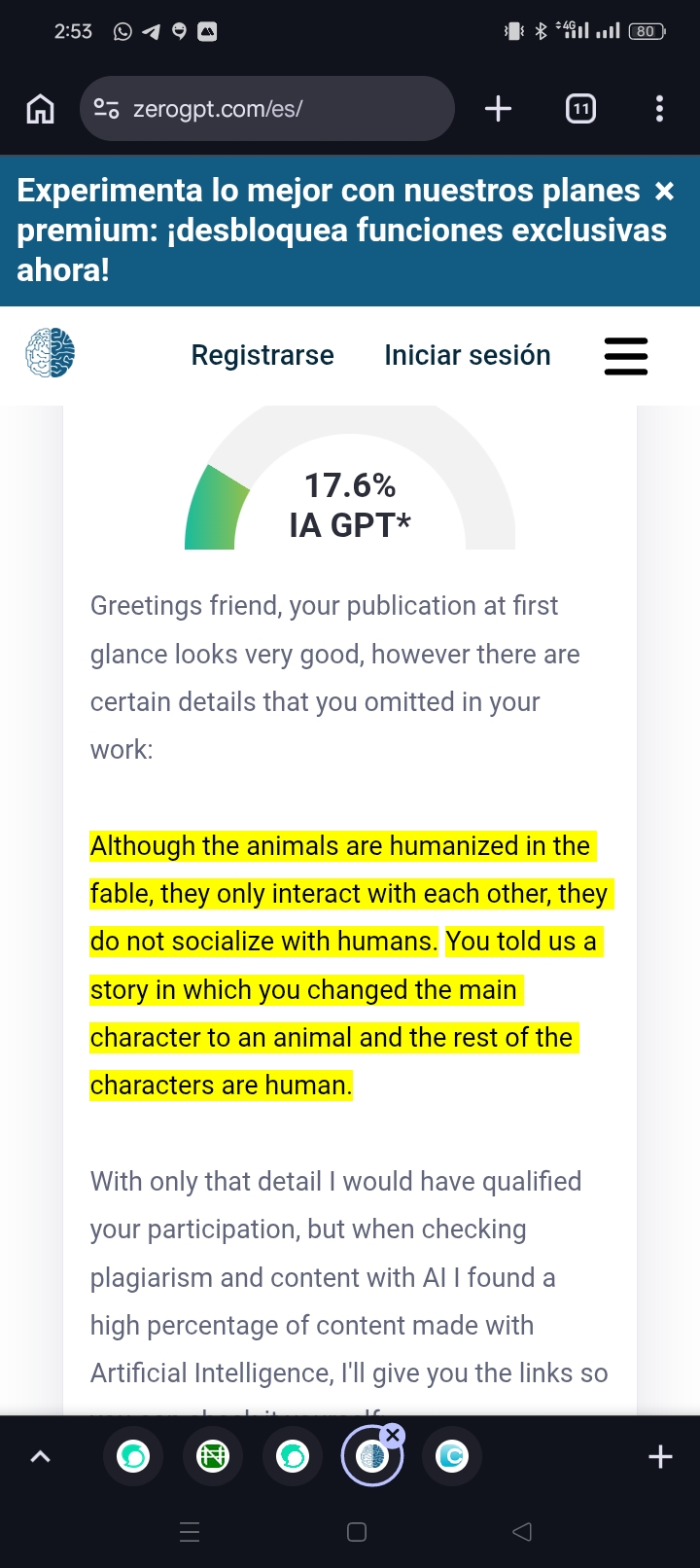 The applications to correct and make suggestions in writing have this problem, that's why I didn't want to rush and wait for your answer. I suggest that when you use it, put at the end of your posts that you have used this tool, in case when you check it gives a percentage in the use of AI.