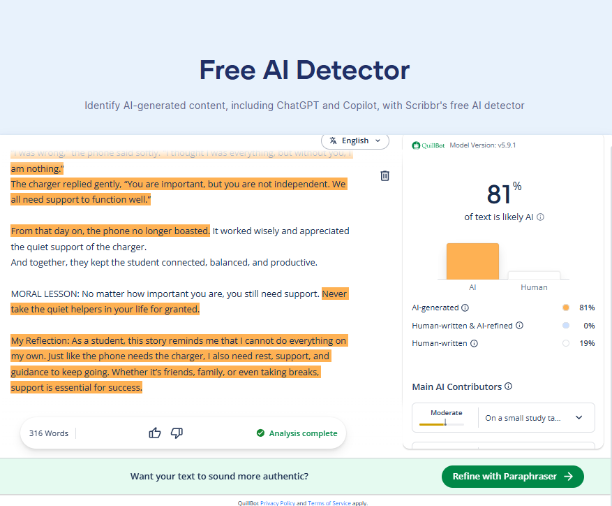 My Reflection: As a student, this story reminds me that I cannot do everything on my own. Just like the phone needs the charger, I also need rest, support, and guidance to keep going. Whether it’s friends, family, or even taking breaks, support is essential for success.