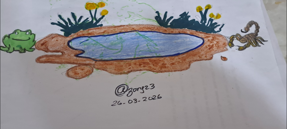 Mientras el sapo nadaba con esfuerzo hacia la otra orilla, sintió un agudo dolor en su espalda. El alacrán lo había picado.
