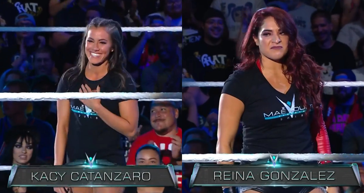 This is another huge contrast in size. Reina is gigantic. Kacy is diminutive. But Kacy is a name, and that should get her one round. Maybe.