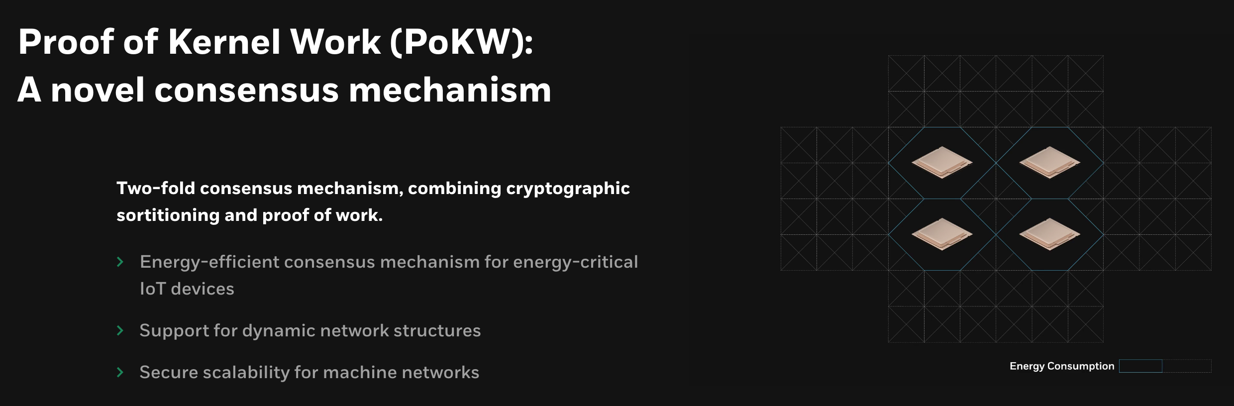The consensus algorithm, PoKW, which will be applied here, supports easy-to-trace dynamic networks and is lightweight and greatly enhances energy efficiency based on machine learning.