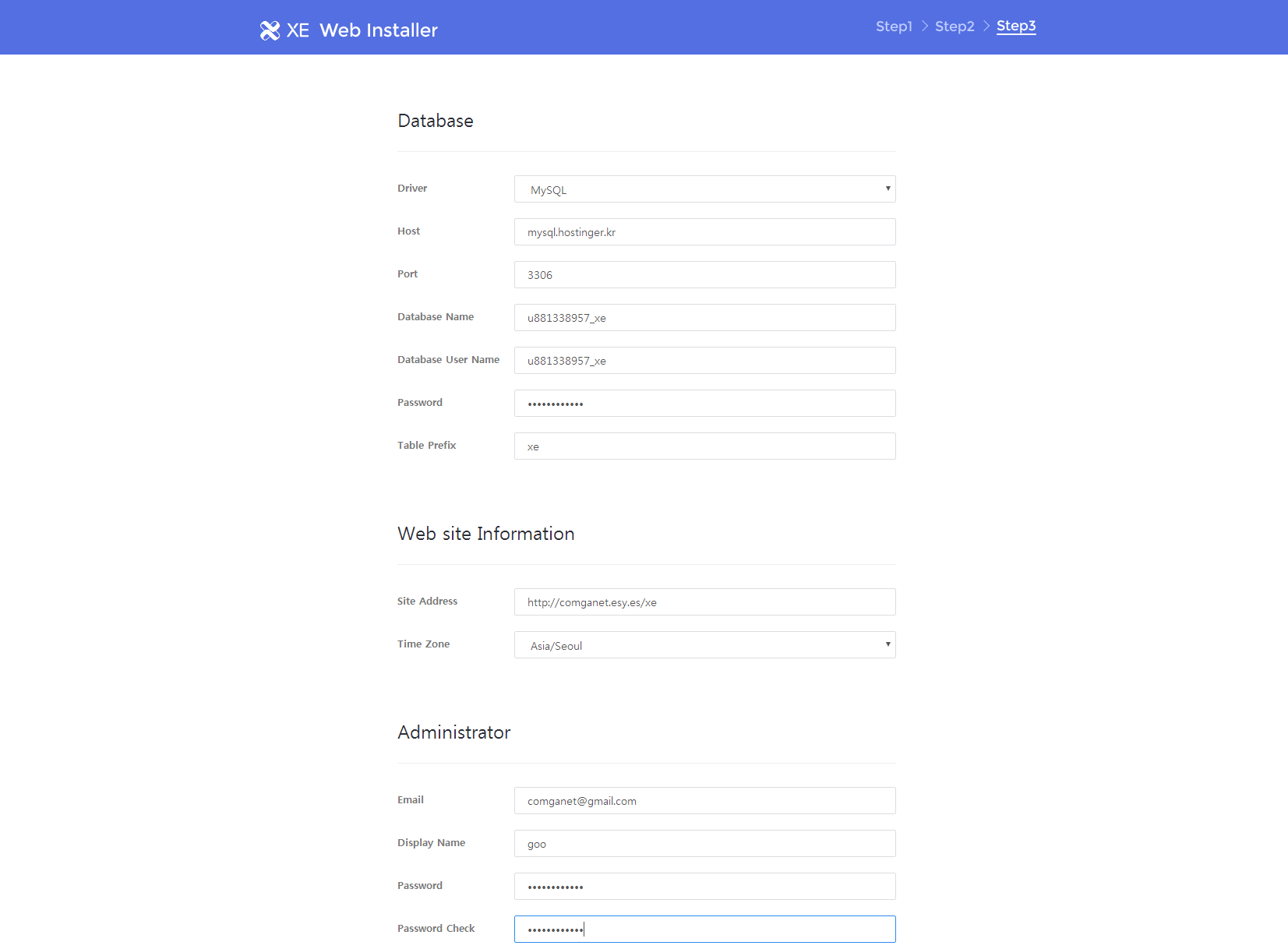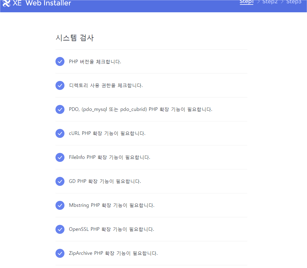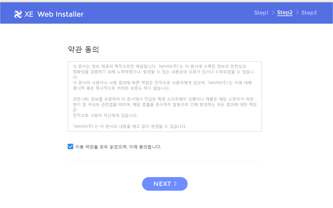 http://yourhost/xe 페이지에 접속하면 아래와 같이 xe 설치 페이지가 보인다.