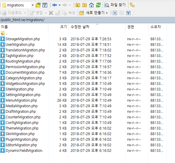 또한 $table->unique … 이라고 된부분을 모두 주석 처림함 , 2018년7월29일 기준 다운로드 받은 파일을 압축하여 저장해둠
