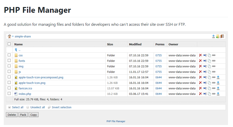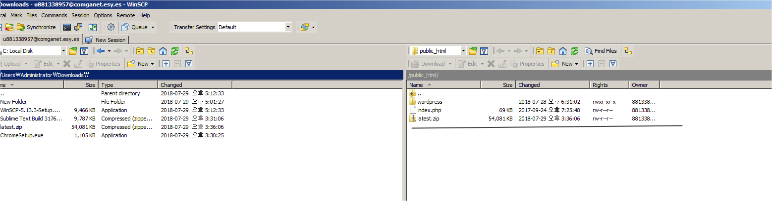 업로드한 파일의 압축을 해제 하기 위해 PHP File Manager 프로그램을 다운로드 받아 서버에 업로드한다.