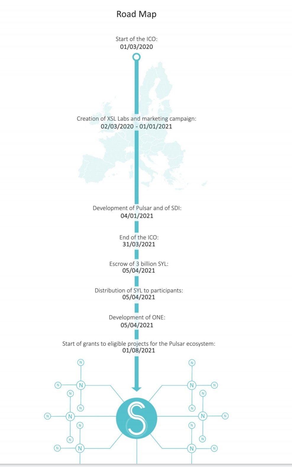 It should be noted that even if XSL Labs disappears, the ecosystem will continue to develop autonomously and to operate perpetually, powered by the players of the network. This is possible because of the decentralization characteristic of the network, and its lack of need of a central and unique decision-maker. Through this "Tokenomics", we can understand that all the players in the ecosystem will have an impact on the asset’s price through their various services.