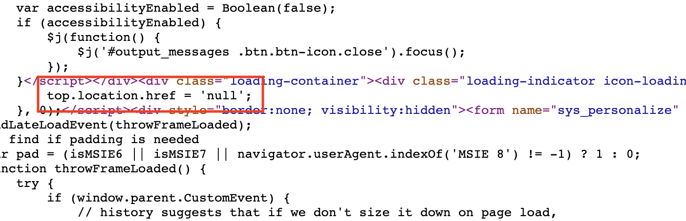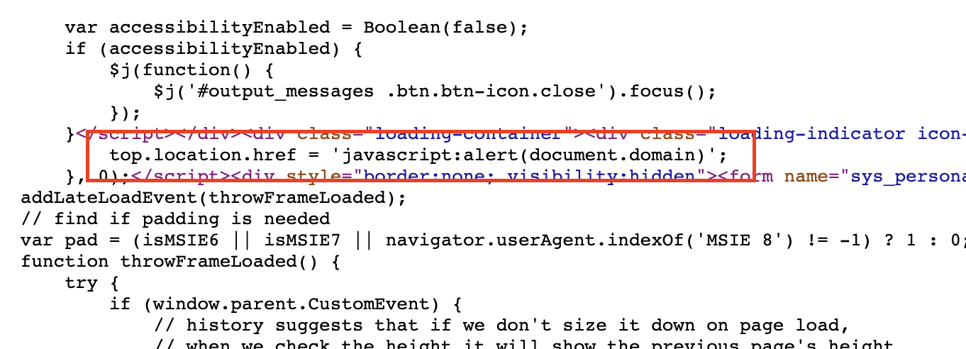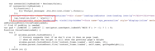 In the above code, we can clearly see that If we can add ‘javascript:alert()’ in the sysparm_url parameter then we can achieve XSS. I tried ‘javascript:alert()’ and in response ‘javascript:’ was removed.