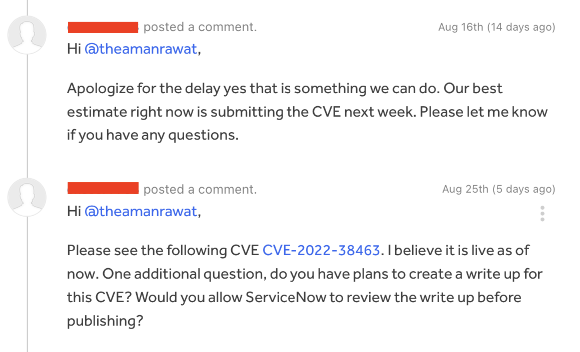 25 Aug 2022 - CVE-2022-38463 assigned by ServiceNow.