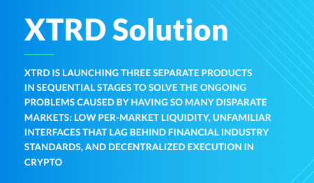 XTRD is focused on becoming the de-facto trusted, US-based technology platform for large financial players to easily execute on crypto. XTRD will generate revenues via execution fees, market data sales, VPS services, software licensing and other ancillary income streams. Operational funds for creating the platform and