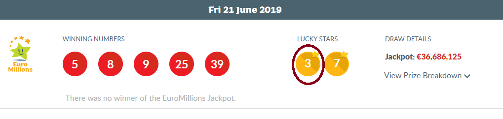 Only one star number for us. Not enough to claim a prize.