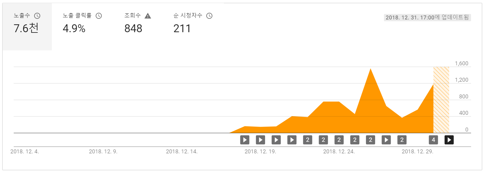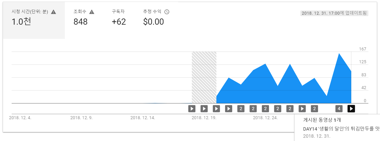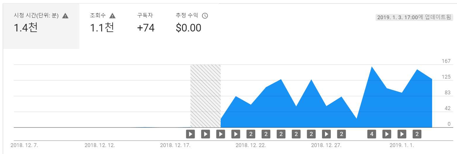 <시청 시간, 12월 31일(14일차 영상 업로드 시점) 5시 기준>