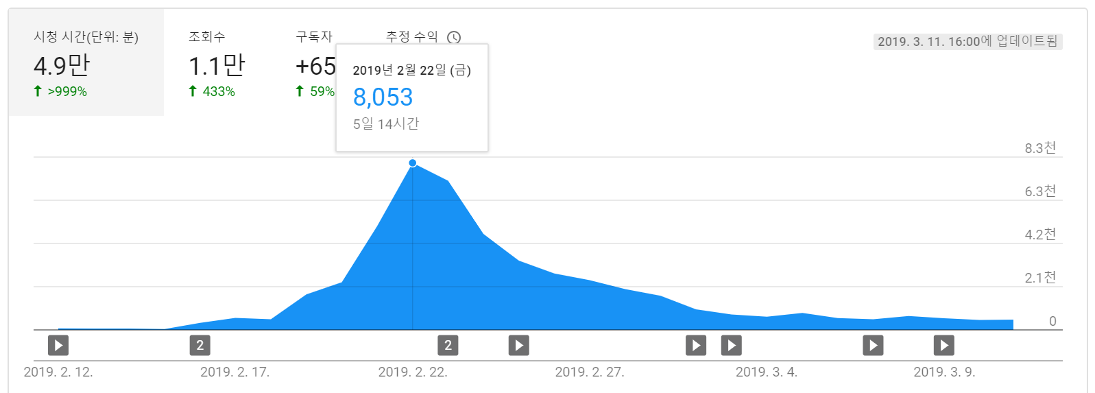 최고 하루에 8,000분을 넘는 시청 시간을 기록하기도 했는데요.