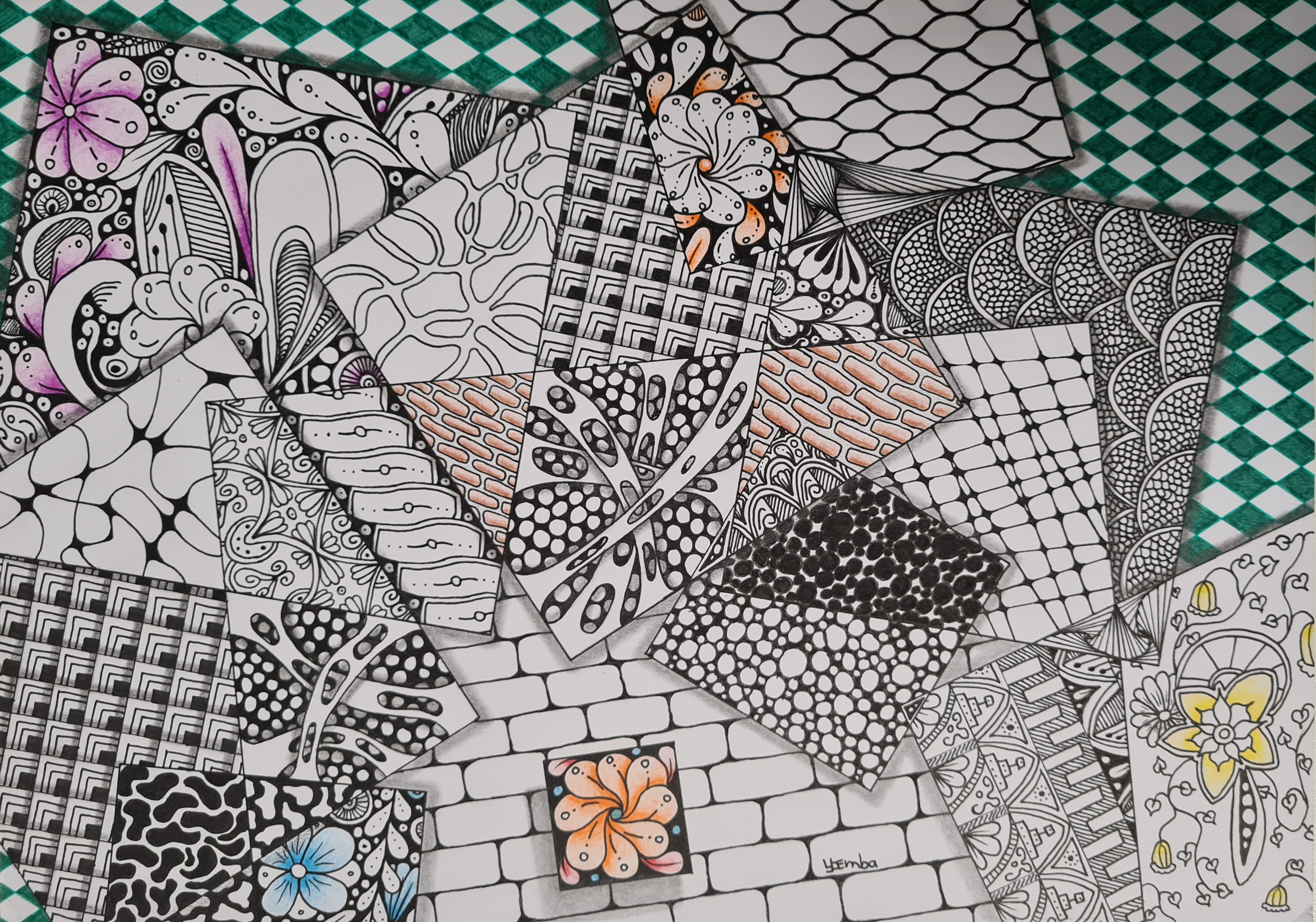 Squaredyoemba (29)in #zentangle • 3 years ago Another project done! Drawn on A4 sized paper using only fineliners and pencils.
