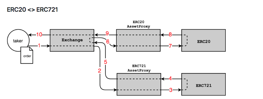 在初代的0x 合約中,交易的實際執行是由Proxy.sol來執行,我們需要事前授權(approve)這個Proxy的地址挪用我們某數量的ERC20 Token。但是ERC712(或是其他比較新的token standard)的approve 與ERC20並不相同,例如ERC 721的approve就多了指定授權代理人「挪用我的哪一個代幣」Token ID。這是初代一個proxy contract不能夠解決的。