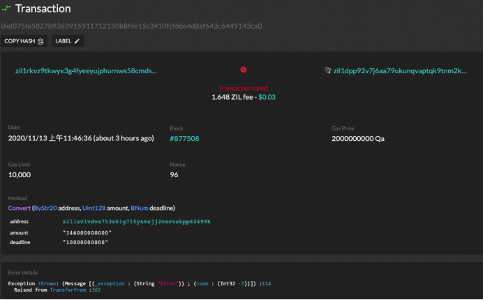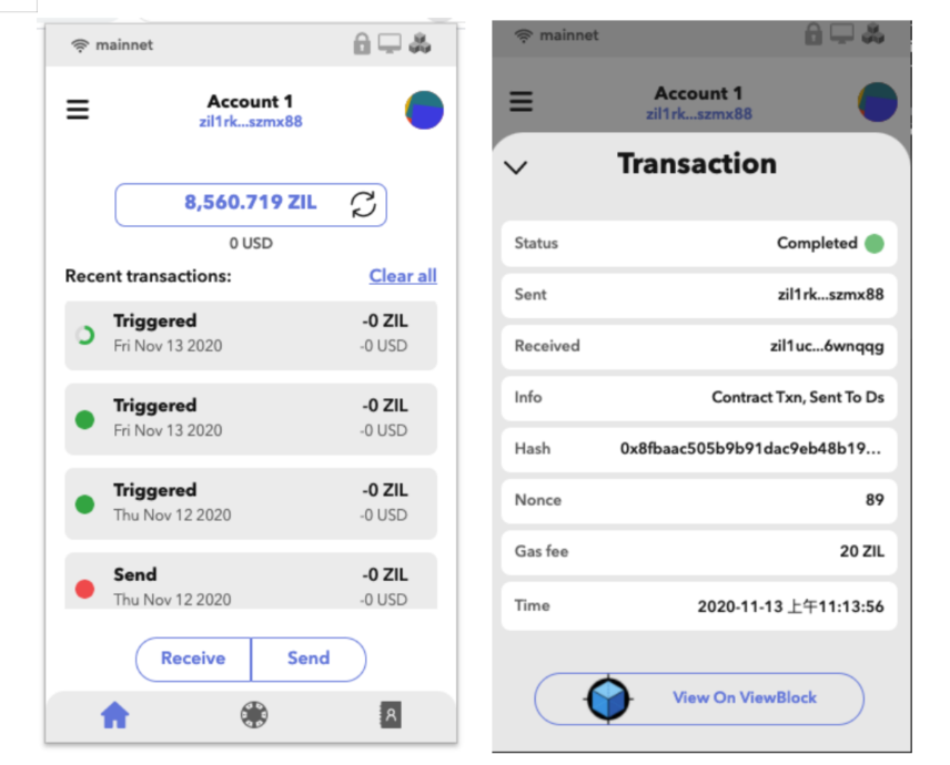 B: a green dot, that means the transaction is accepted by zilliqa’s node, plz tap on the transaction and click on ‘view on viewblock’, most of the time it means that the transaction is succeeded (see following pic3), but in some cases it may fail (see following pic4), if it fails, plz try again with higher gas fee.