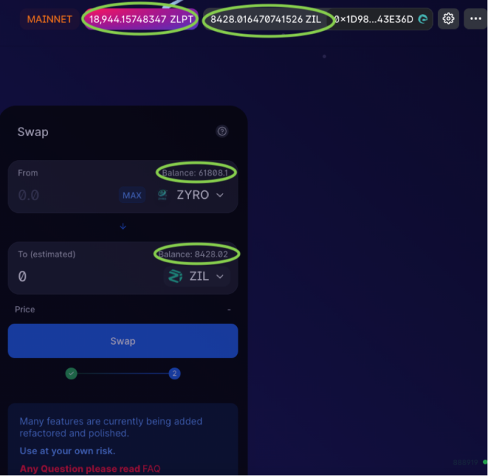Don’t be scared by what it says on Zilpay about the Gas fee, that’s an estimated maximum. Usually, itcosts 1-8 ZIL for the transactions like swapping or providing liquidity.