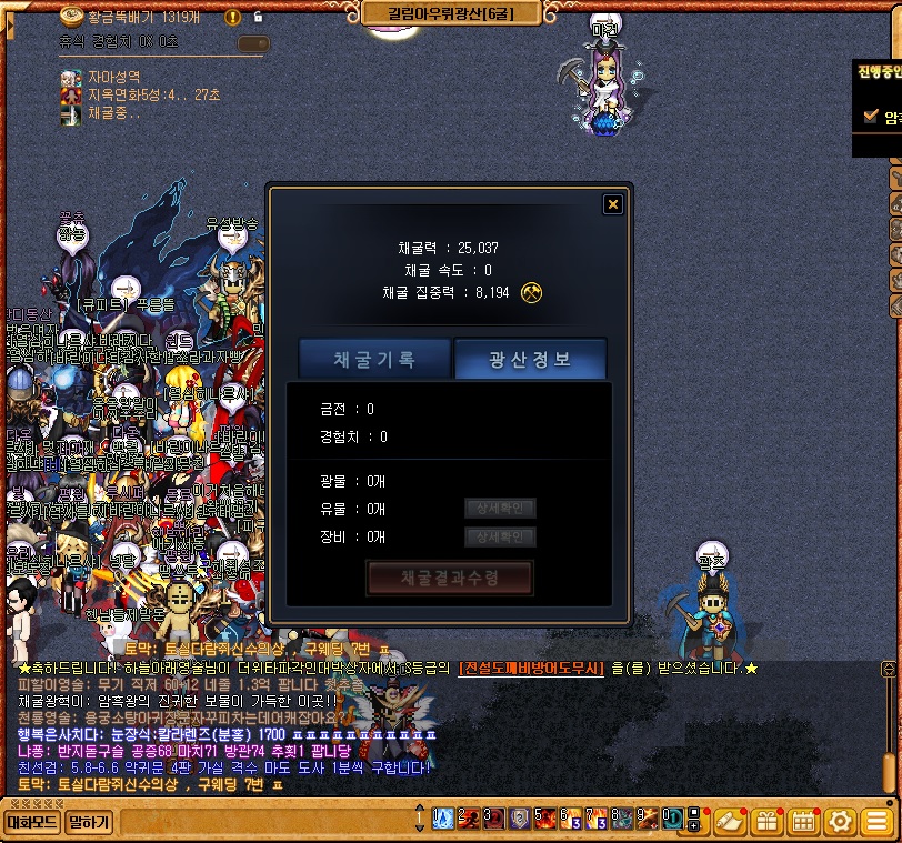 채굴용 도시락을 먹어서 광산에 들어가는데 경험치 및