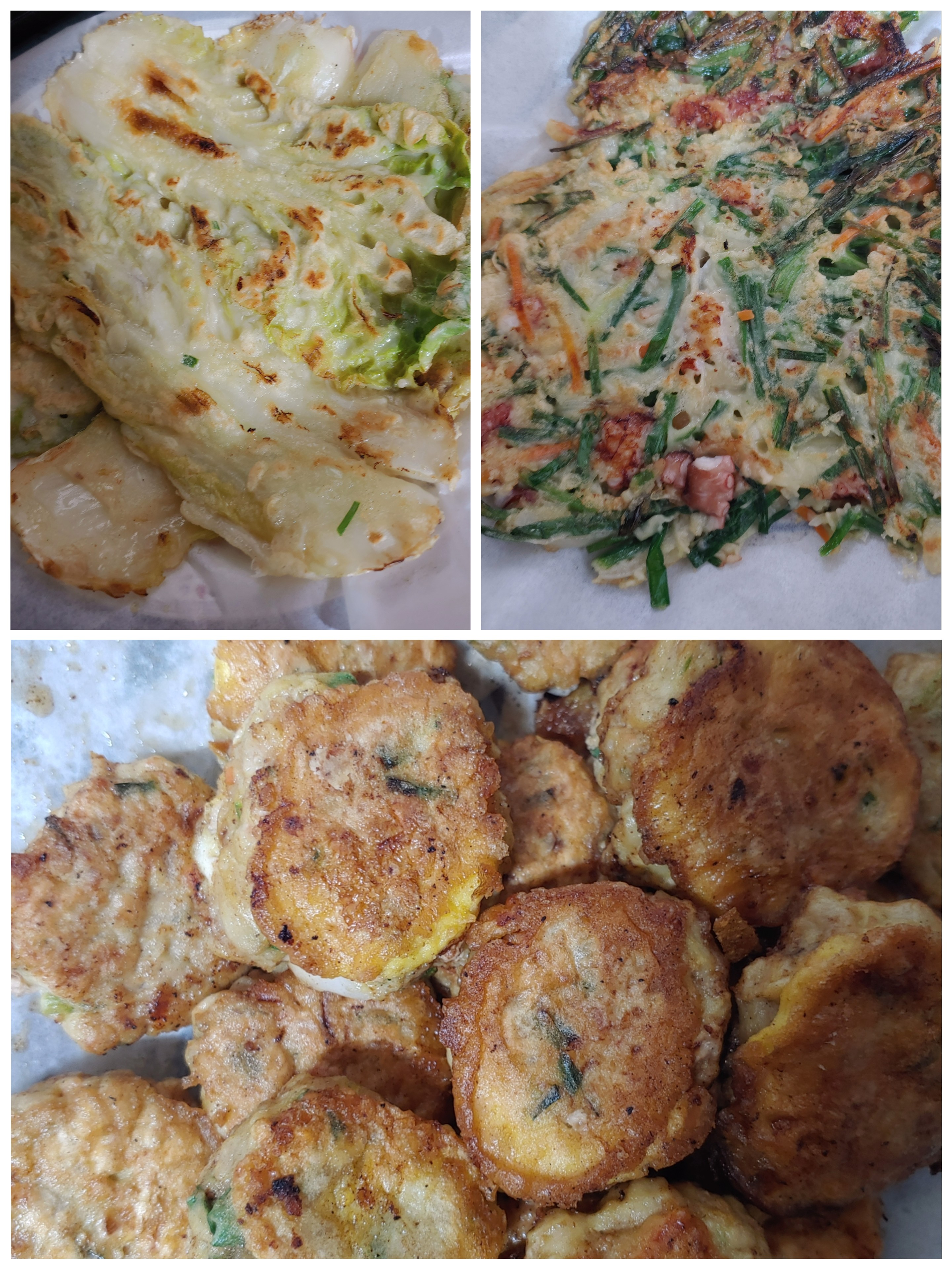맛있는astraea09 (72)in #zzan • 3 years ago 전 3종세트 배추전..부추전..동그랑땡~ 큰놈 반찬 보내면서 나머지 야채들로 만든 전3종세트^^ 집안이 온통 기름냄새다.ㅎㅎ #kissteem #krsucess