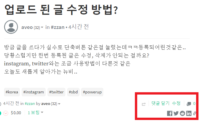 당황스럽지만 한번 등록된 글은 수정, 삭제가 안되는 걸까요?