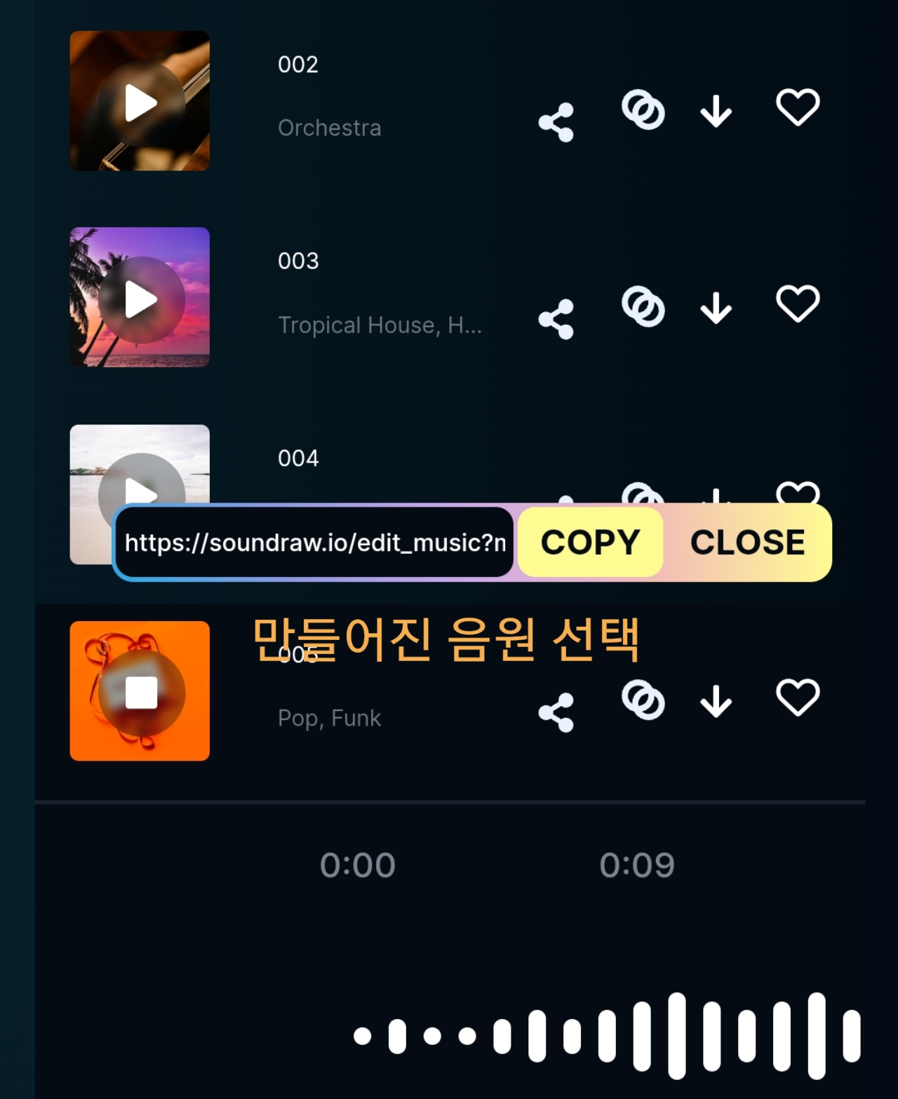 만든 음원을 다운로드 할 수 없다.