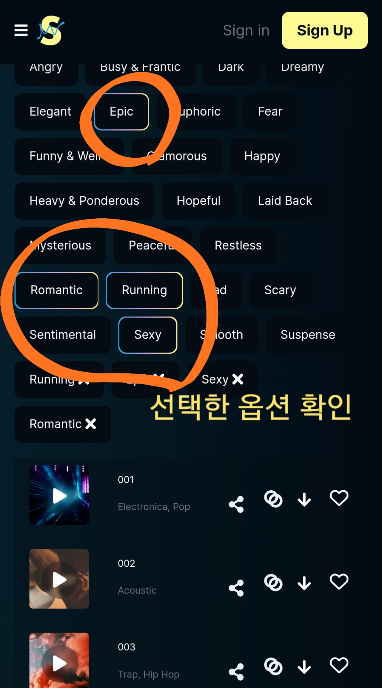 대신 북마크를(링크)통해 음원 감상 가능.