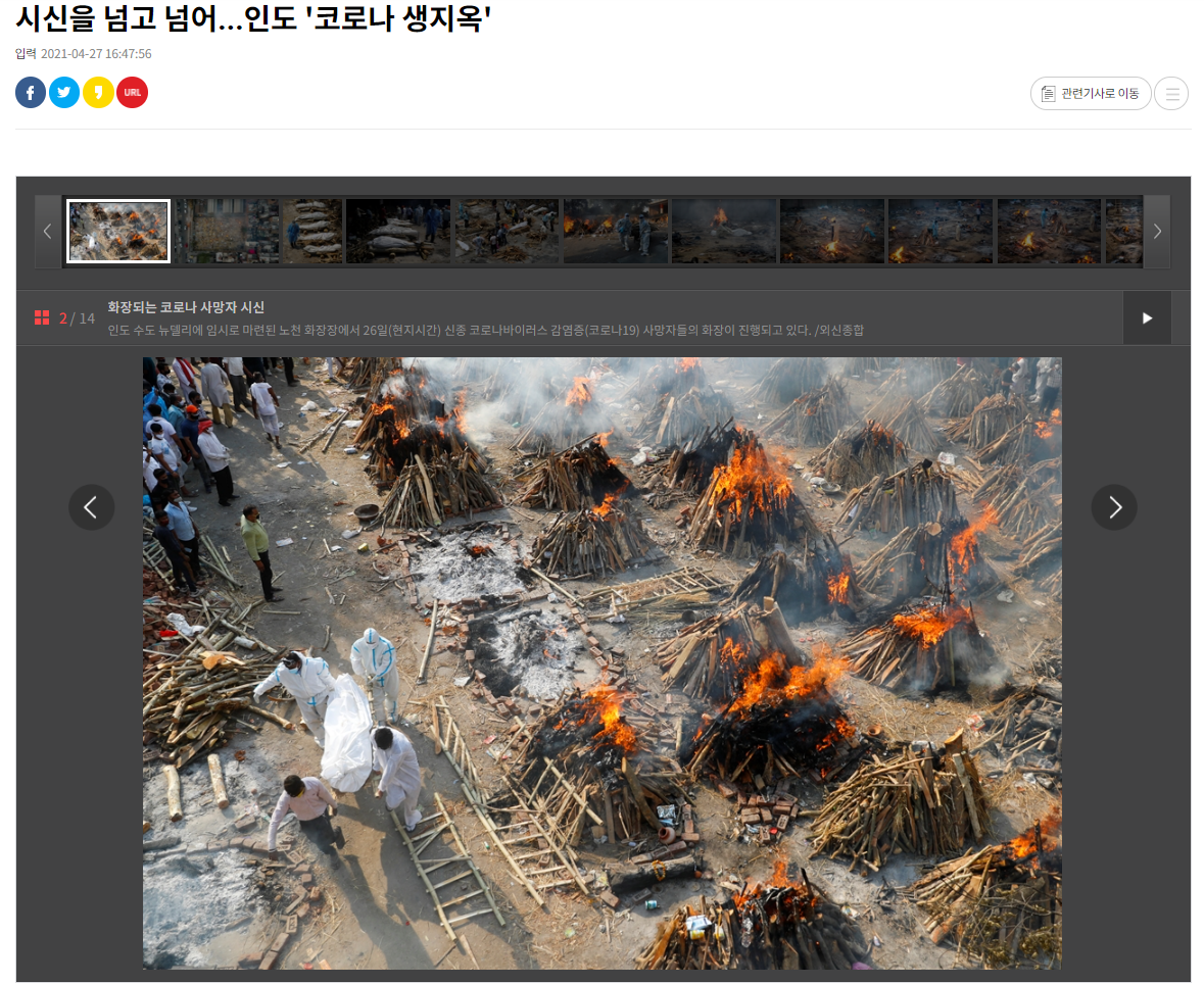 그러나 저 사진을 보고 뒤에 따라 나오는 사진을 더 보고 나니 지옥이 따로 없구나, 코로나가 지옥이구나 싶고 귀찮은 것을 넘어 강제하는 방역수칙들이 달리 하는 것이 아니구나 하는 생각에 정부에서 하는 방역조치에 불만을 토로하거나 지키지 않는 무리를 향한 약간의 너그러운 마음도 싹 사라져 버린다.