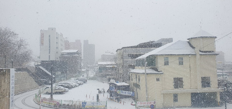 근래 들어 보기 드물게 내리는 함박눈이다.